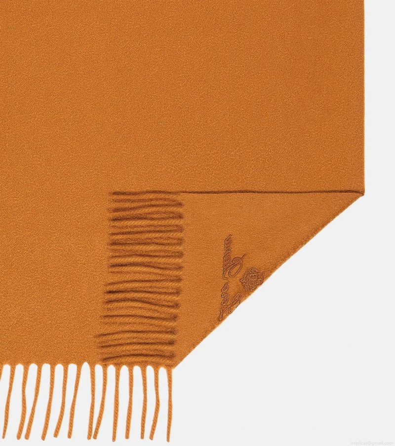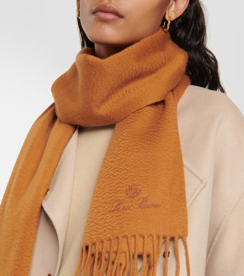 This Loro Piana scarf has been crafted in Italy from cashmere. The wide brown design is finished with a fringed hem at both ends and tonal logo embroidery.