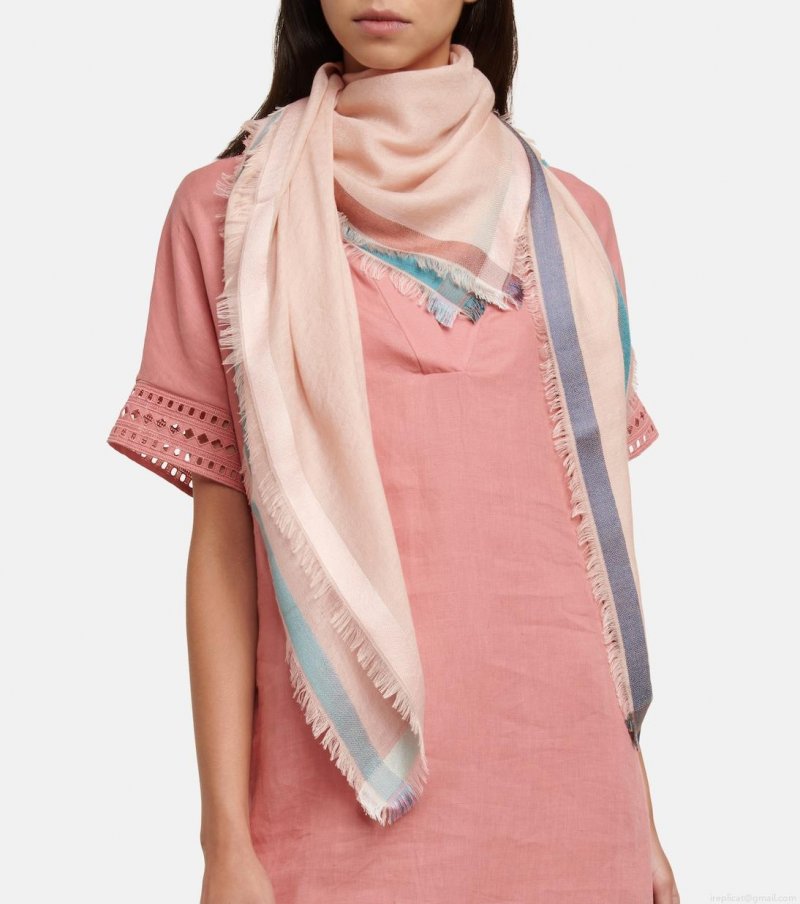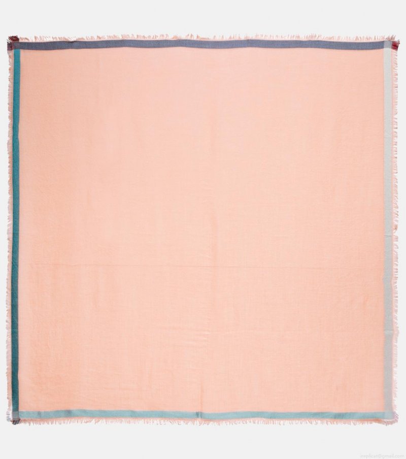 The Soffio Rainbow scarf from Loro Piana is made from cashmere and silk in a square profile that lends itself to versatile styling. Notice the striped edging and gently frayed trims.