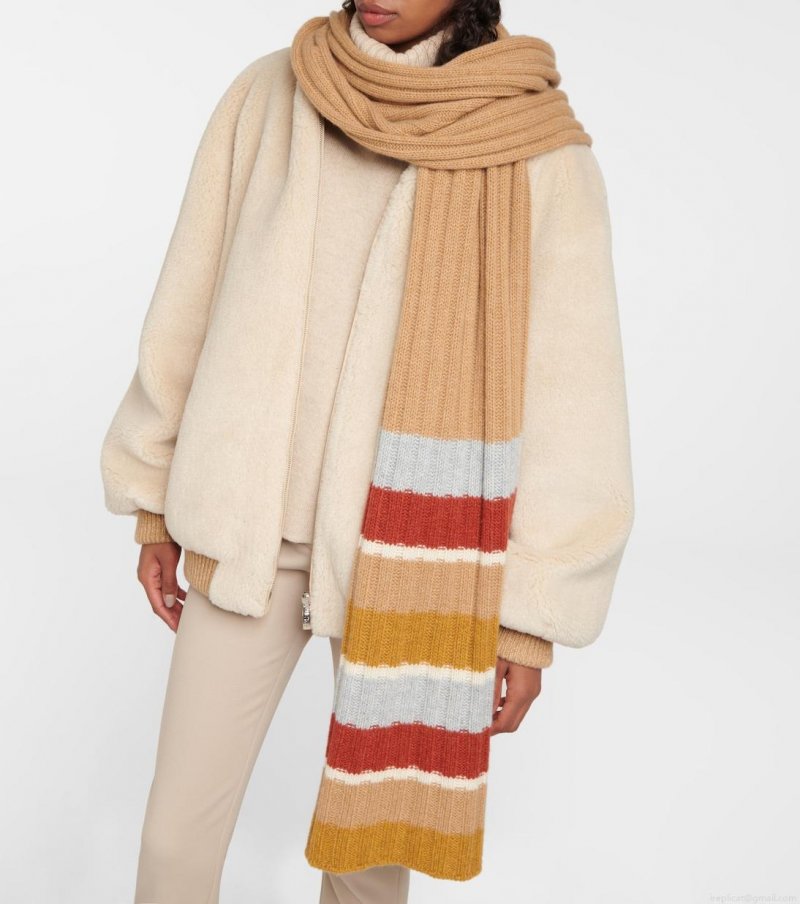 This scarf from Loro Piana is knitted from pure cashmere and features a multicolored striped motif.