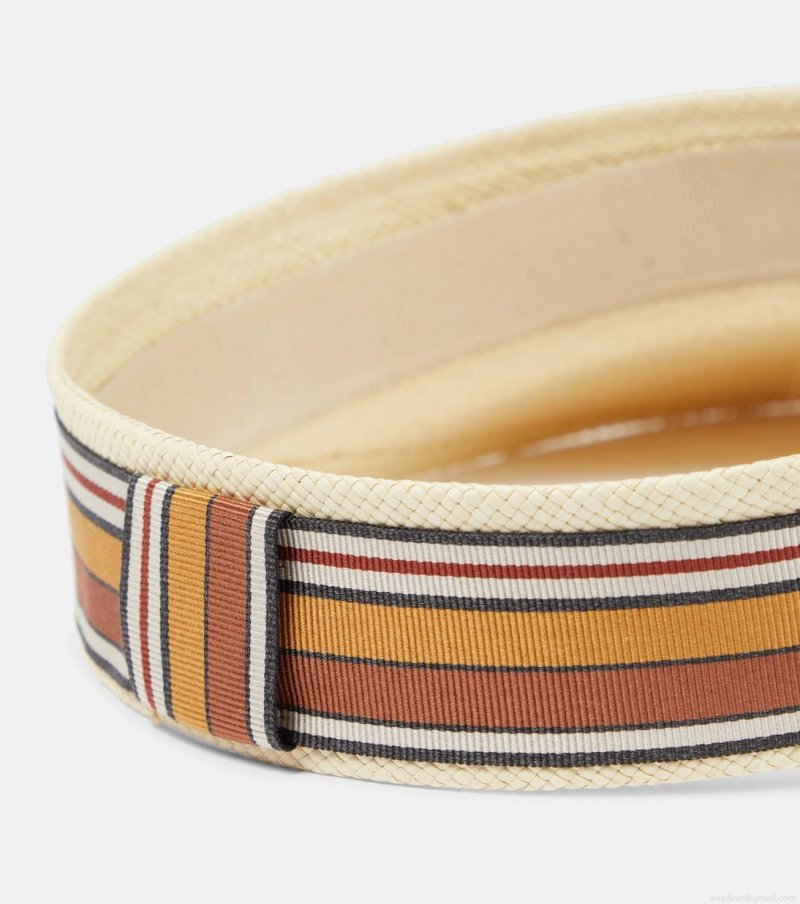 Shield your eyes from the sun with this stylish visor from Loro Piana's Resort Capsule. It's handwoven from natural woven straw with a silk grosgrain Suitcase Stripe ribbon on the brim.