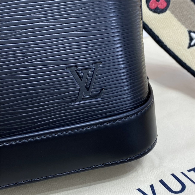 One of the House’s most recognizable bags, the adorable Alma BB handbag gets a sporty makeover thanks to a new Jacquard strap. The fashionably wide strap is embroidered with Louis Vuitton on one side and Monogram Blossoms on the other, and features delicate stitching along its edges. Made from colorful Epi leather, this bag will definitely turn heads.
