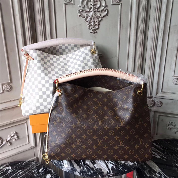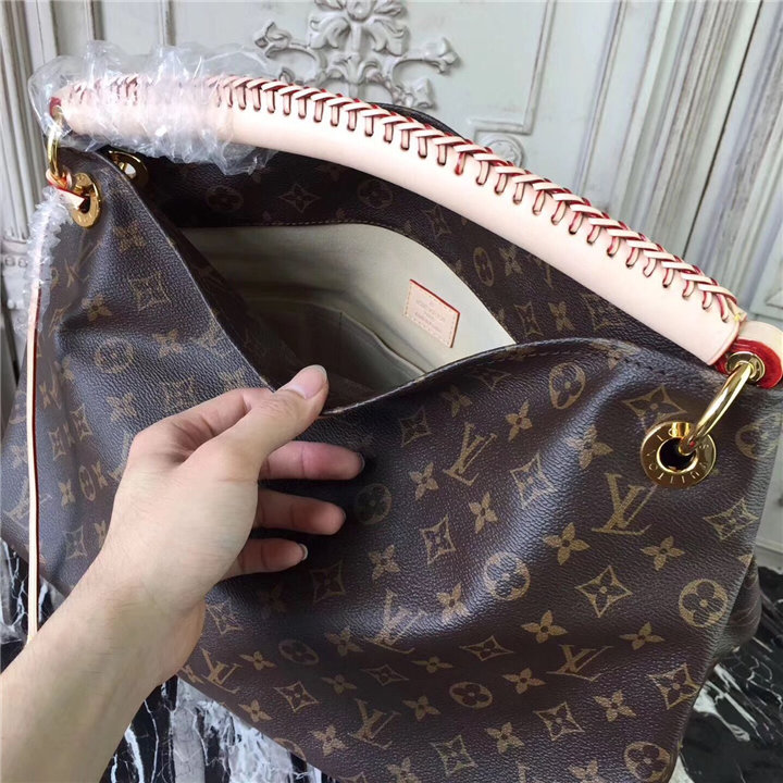 The Artsy MM embodies understated bohemian style. Louis Vuitton””s iconic and divinely supple Monogram canvas is enhanced by rich golden color metallic pieces and an exquisite handcrafted leather handle.