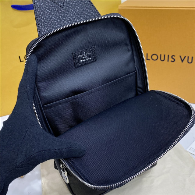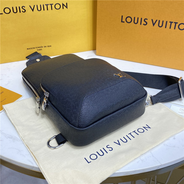 The Avenue Sling Bag in Taiga leather, with silver-color LV Initials, is a stylish alternative to the more orthodox backpack. Its distinctive shape lines and adjustable strap – which can be worn on the left or right shoulder thanks to the bag’s two strap hooks – make it instantly recognizable. The front zipped pocket and inside flat pockets make it practical.