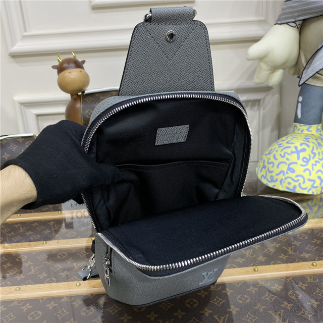 The Avenue Sling Bag in Taiga leather is an elegant option for those looking for a practical everyday bag. It features two zipped compartments to keep essentials organized and an extra-wide strap for shoulder wear that adjusts for left- or right-side carry. It’s signed with metallic tone-on-tone LV initials.