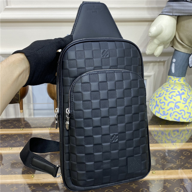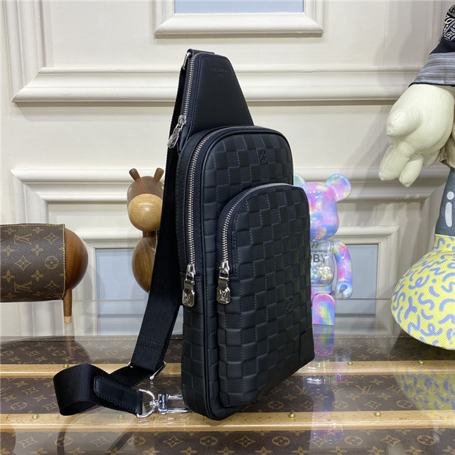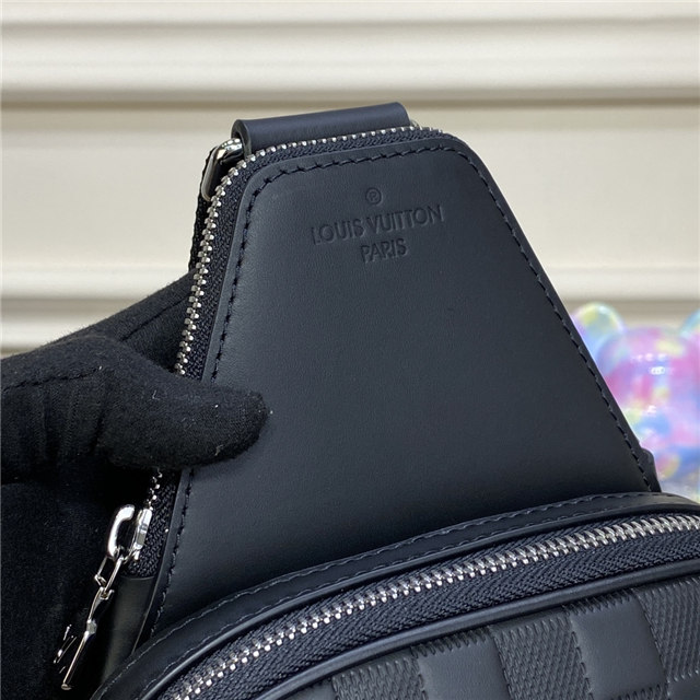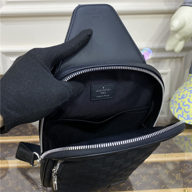 The Avenue Slingbag is made from Damier Infini leather with the House’s classic checkerboard pattern embossed into the leather. The imprint is deep enough to remain over time while still maintaining a supple feel. The adjustable strap can be attached to the D-ring on right or left side of the bag.