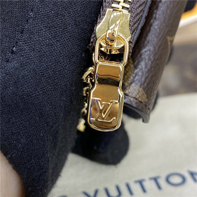 The Card Holder Recto Verso combines Monogram canvas with smart leather trim. It offers an envelope-style pocket at the front, an in-between pocket for folded bills, and a zipped compartment with a wide, L-shaped opening for coins. At the back, three card slots complete this ingenious, all-in-one accessory, which can be hooked onto a bag or belt.