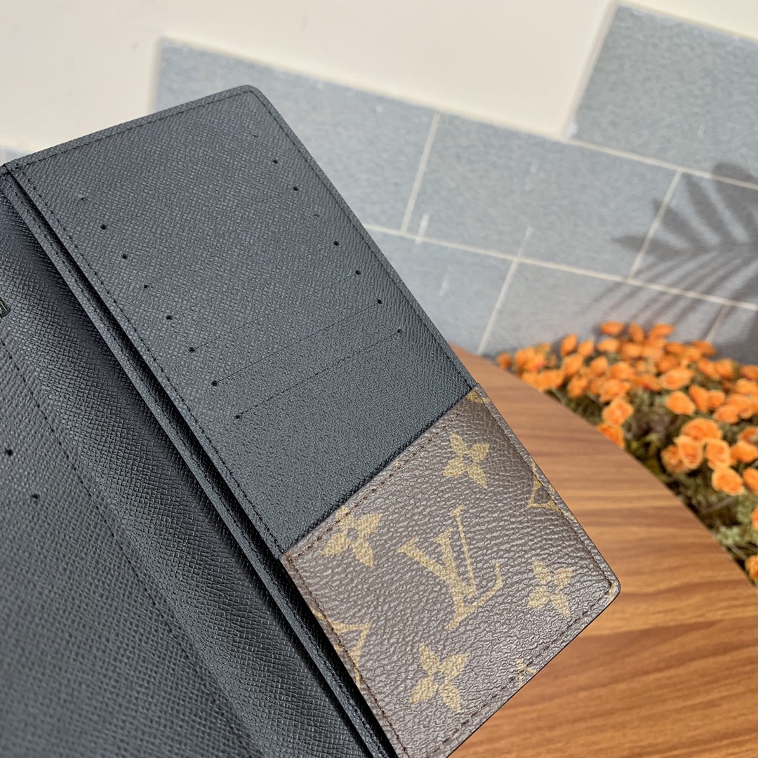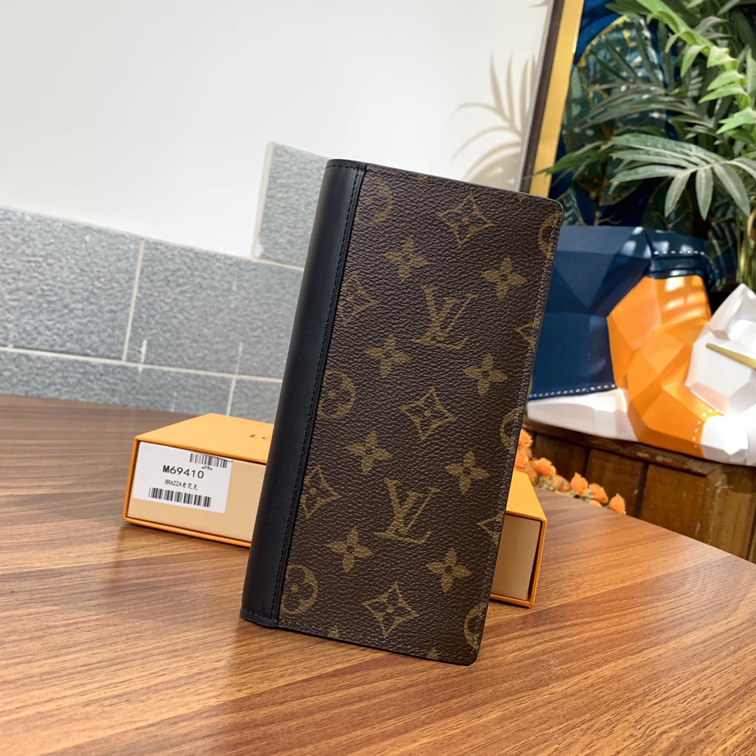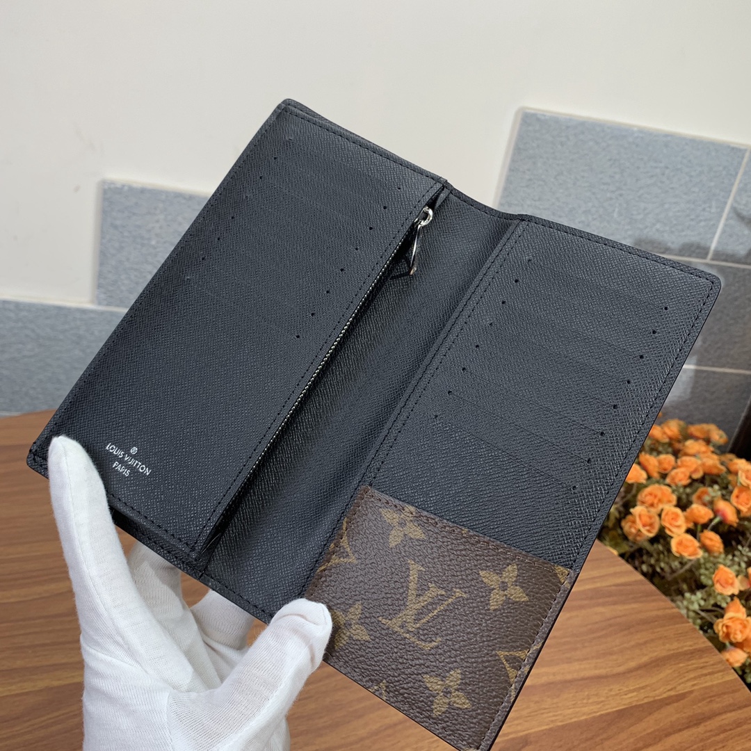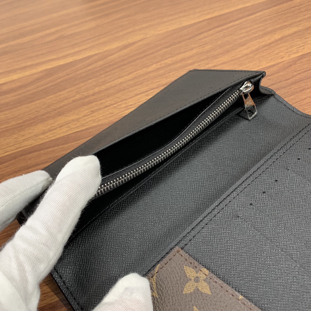 The Premium Original Factory Monogram Macassar Brazza Wallet” is a refined design featuring the iconic Monogram Macassar coated canvas and smooth cowhide leather. It offers a slim profile that easily fits into jacket pockets and includes card slots, a coin pocket, and compartments for accommodating banknotes and receipts.
