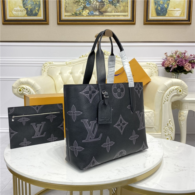 Made from Taurillon Shadow leather, the roomy Cabas Voyage tote features two long handles for comfortable hand or shoulder carry. The extra-large Monogram motif embossed on the leather gives this bag an understated charm. Its practical interior includes a flat pocket and a zipped pocket that can be removed and used as a small document pouch.