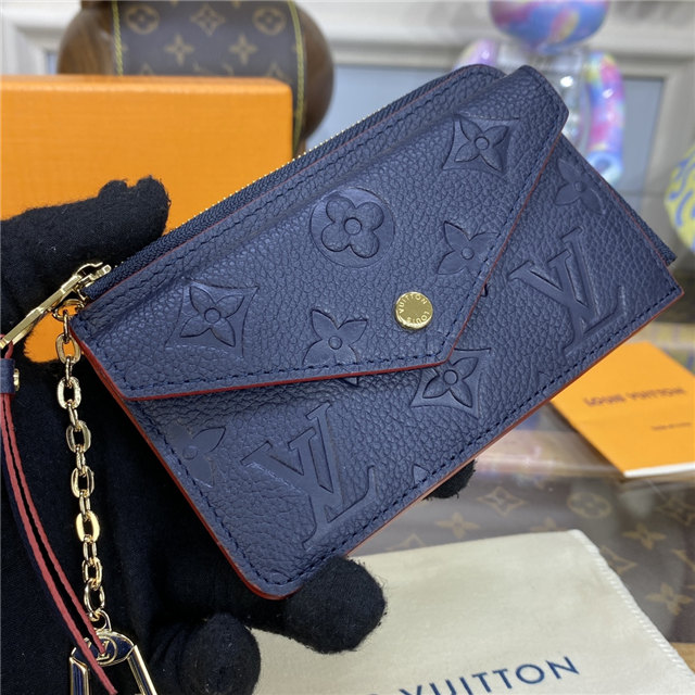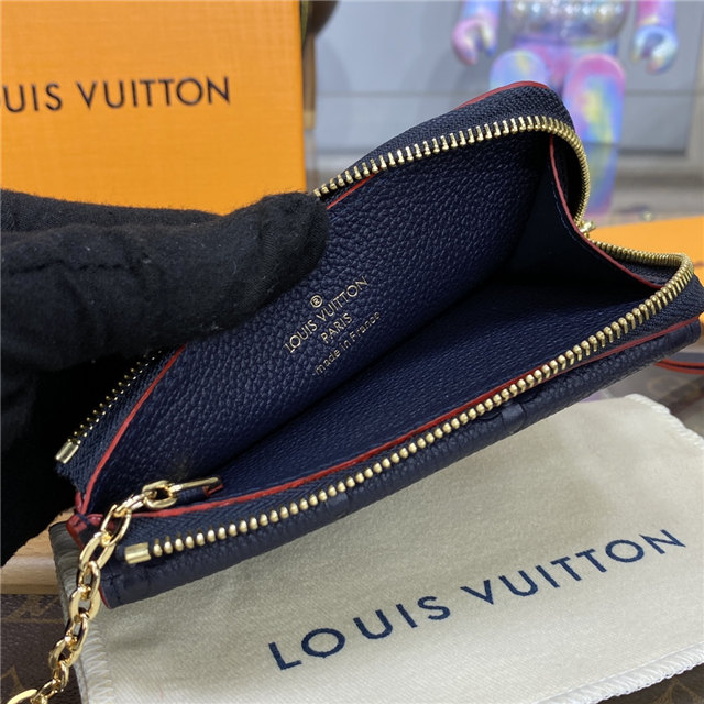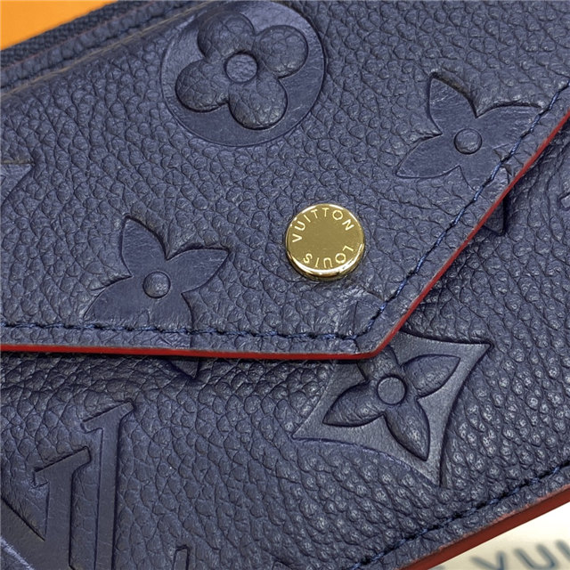 The Card Holder Recto Verso in Monogram Empreinte leather is an ingenious, multi-functional design. Among its practical features are a compartment with a wide, L-shaped zip, which can hold coins, an in-between pocket for folded bills, an envelope-style front pocket, and three card slots. It can also be hooked onto a bag or belt.
