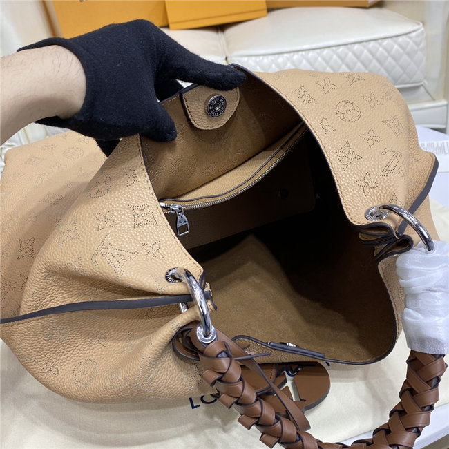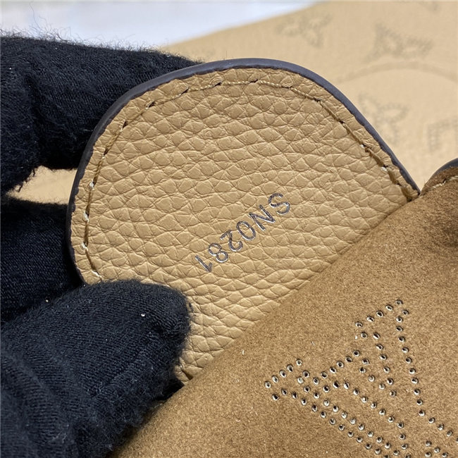 The Carmel hobo bag in perforated Mahina calf leather comes from the season’s Flight Mode capsule collection. Lightweight, soft and supple, it is an ideal travel companion, with ample room for essentials. The bag’s braided leather handle, name tag and LV charm give this piece a fashionable, crafted touch.