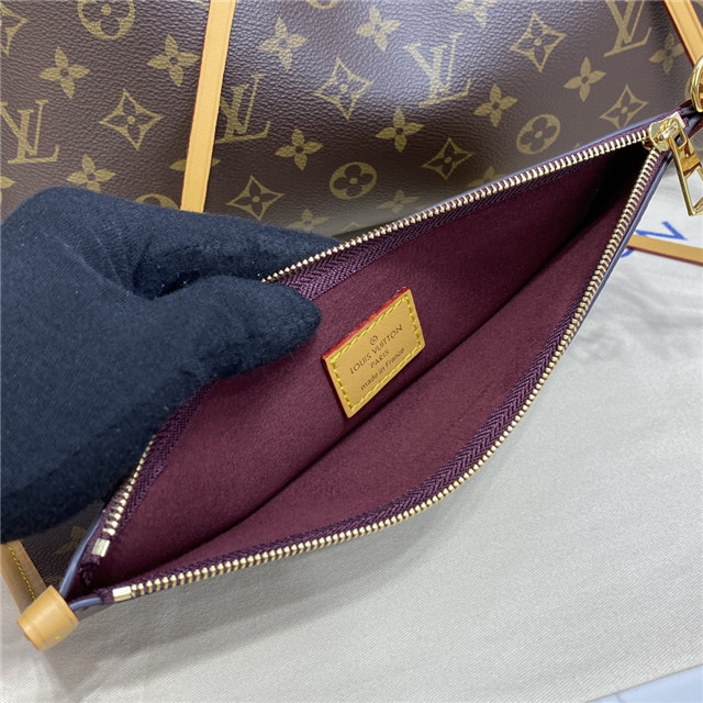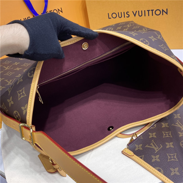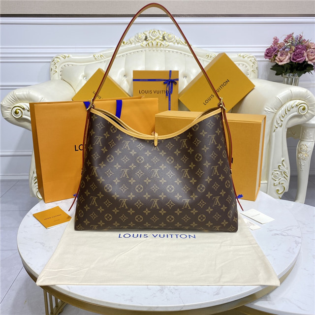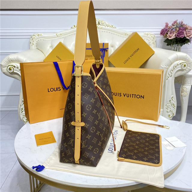 Louis Vuitton launches the CarryAll MM handbag in Monogram canvas with natural leather trim. Its contemporary, body-friendly design and roomy interior make this a fantastic everyday bag. Inside zipped pockets and a removable zipped pouch deliver even more functionality. A gold-color buckle allows the handle to be shortened or lengthened.