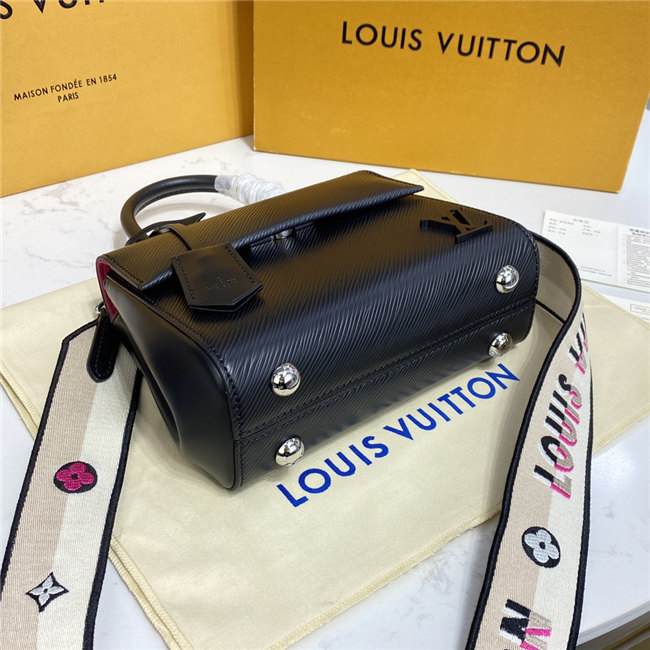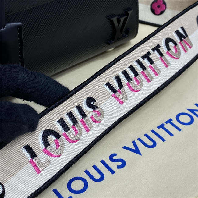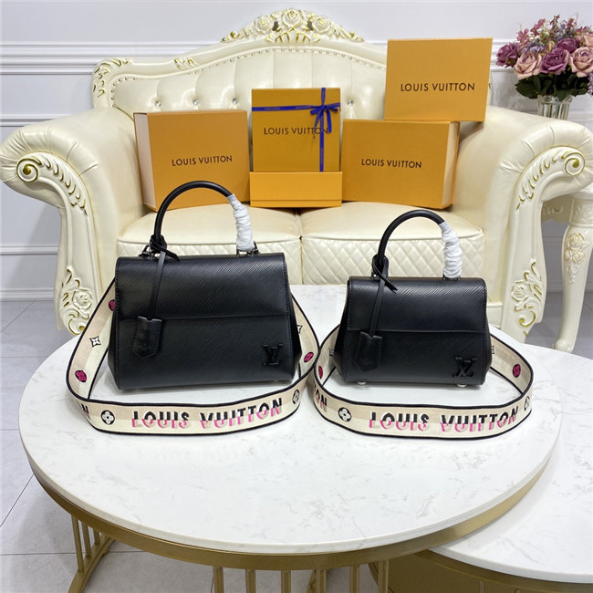This exclusive Cluny Mini handbag features a reversible jacquard strap: one side displays the Louis Vuitton logo for a statement look; the other shows Monogram Flowers, for a subtle effect. Made from textured Epi leather, the bag also features an LV signature in smooth resin and a contrasting lining. The strap is removable for a more dressed-up allure.