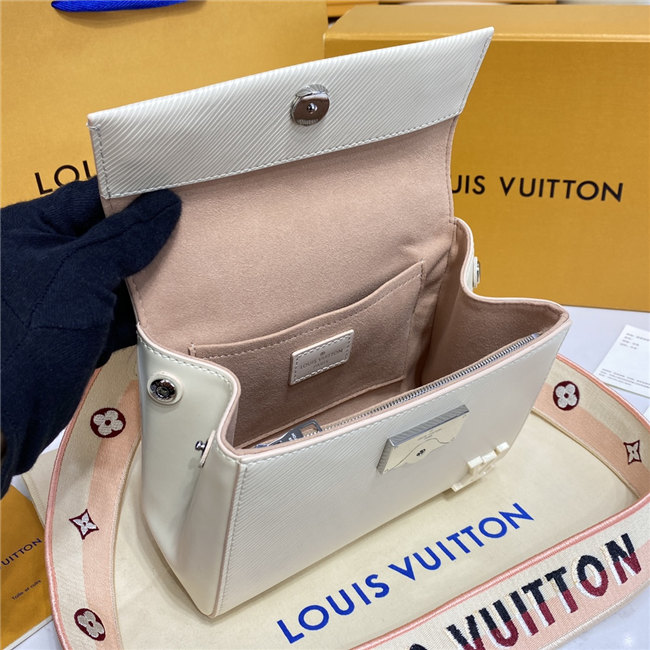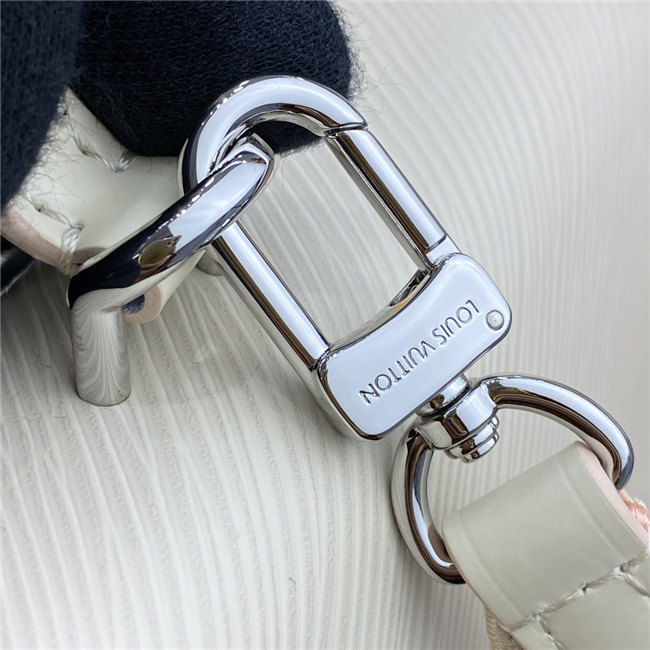 This exclusive Cluny Mini handbag features a reversible jacquard strap: one side displays the Louis Vuitton logo for a statement look; the other shows Monogram Flowers, for a subtle effect. Made from textured Epi leather, the bag also features an LV signature in smooth resin and a contrasting lining. The strap is removable for a more dressed-up allure.