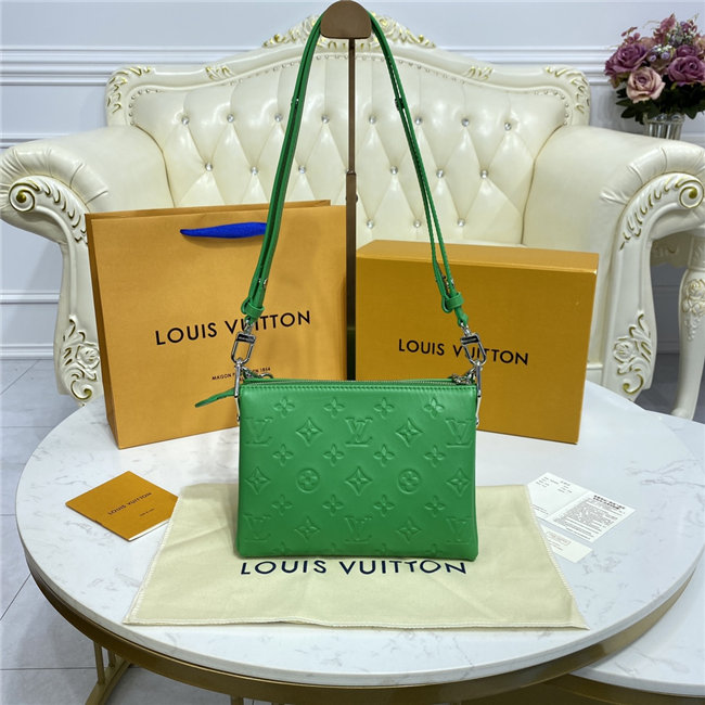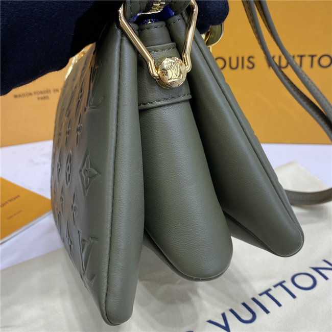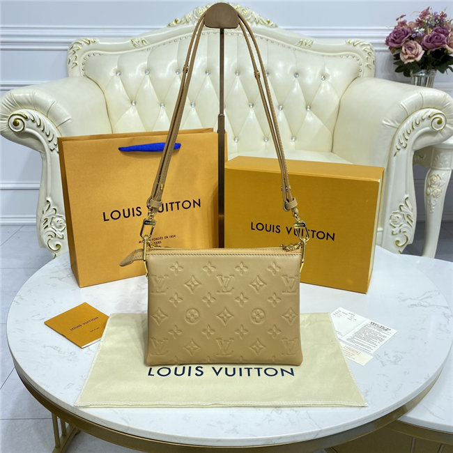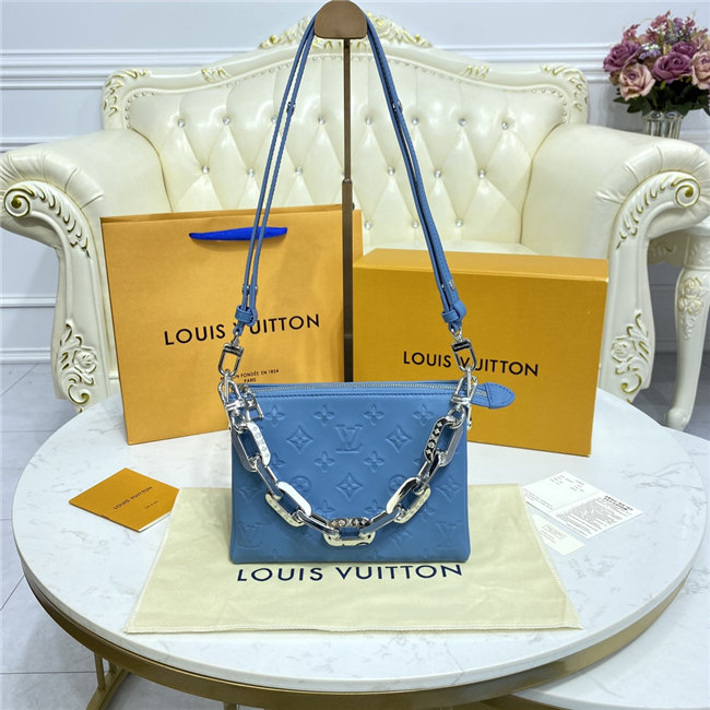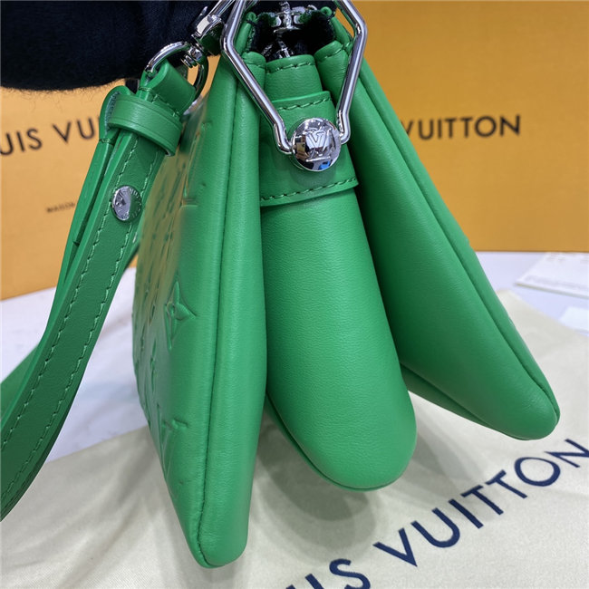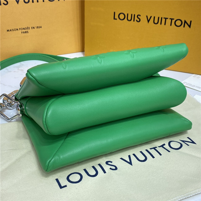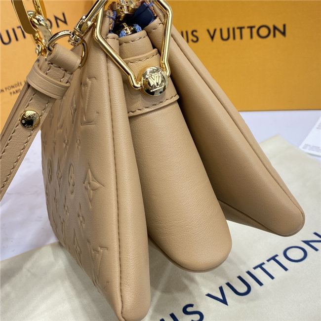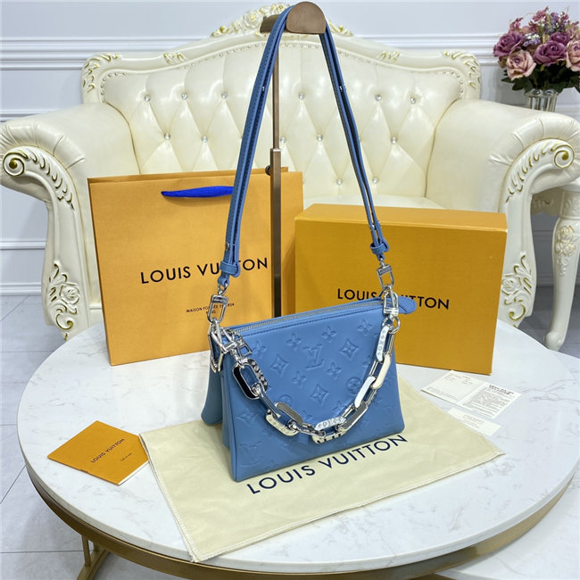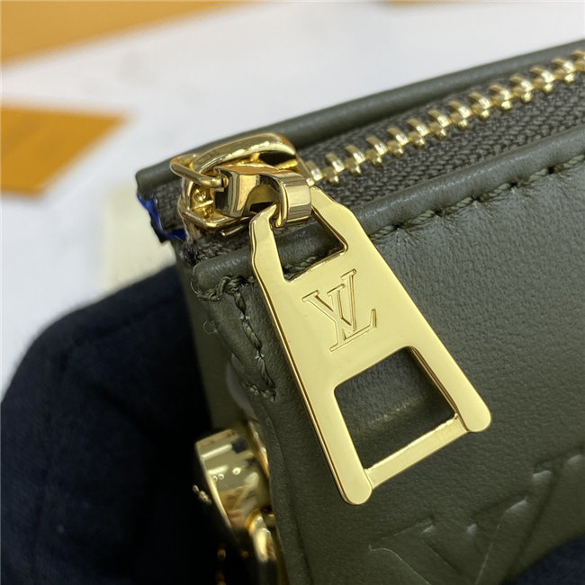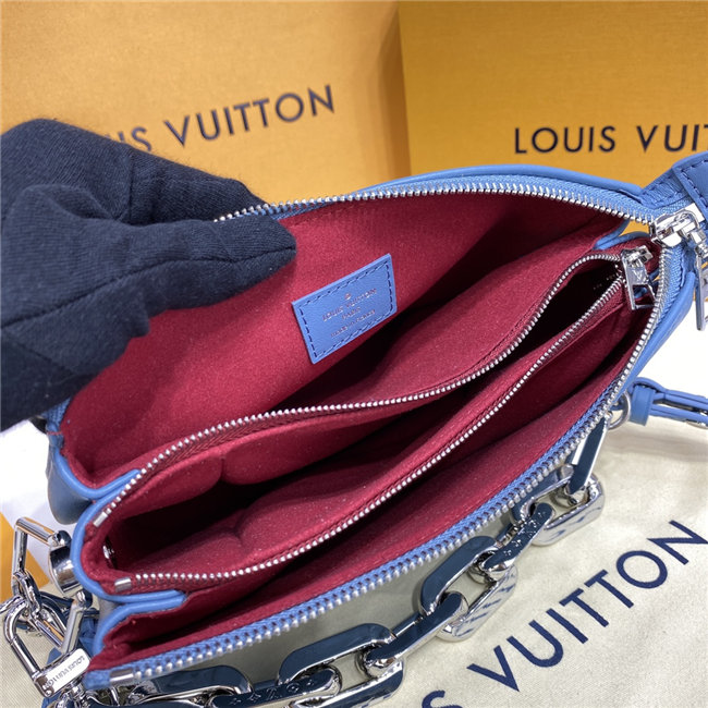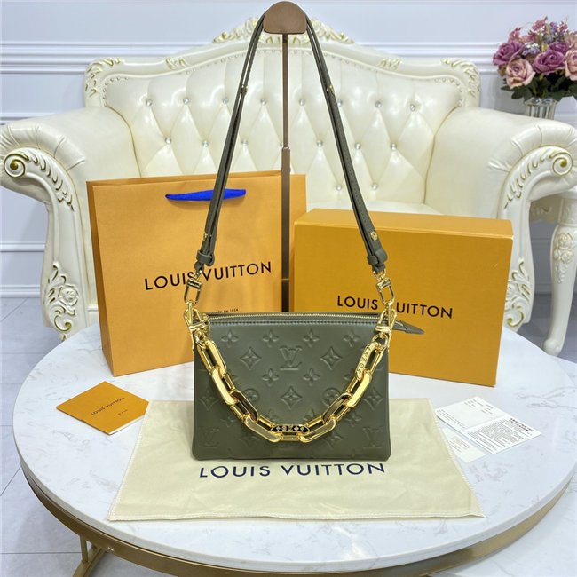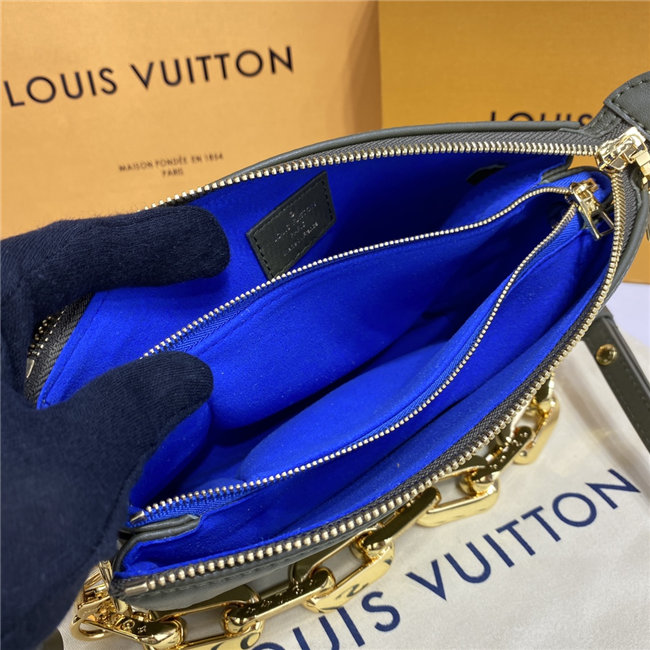 The super soft and cushiony Coussin BB is an adorably compact handbag, fashioned from puffy lambskin embossed with the Monogram pattern. A chunky gold-color chain and a thin leather strap, both removable, enable different attitudes and carry options. Two inside compartments add practicality, making this an ideal day-to-evening accessory.