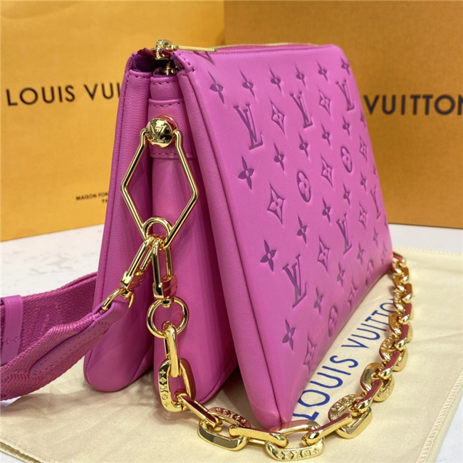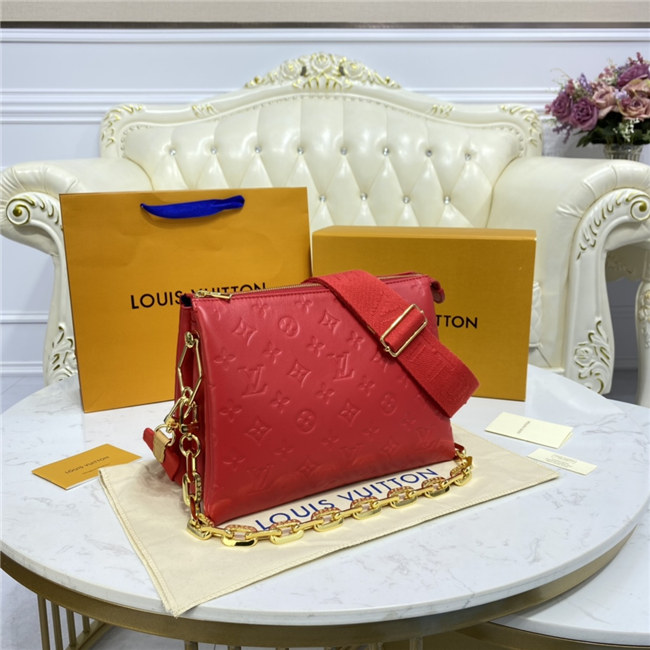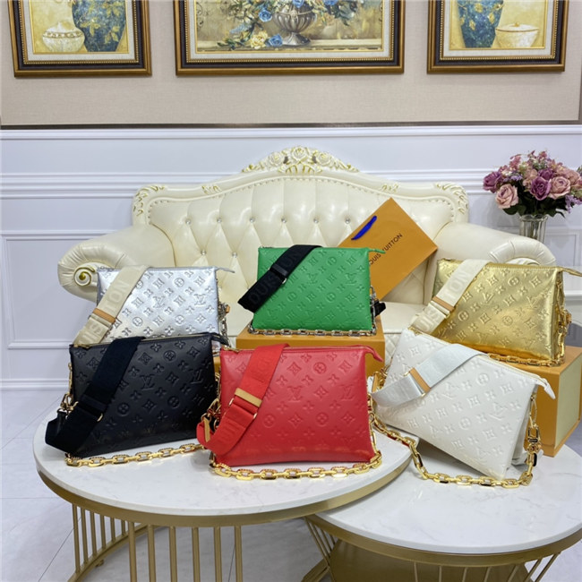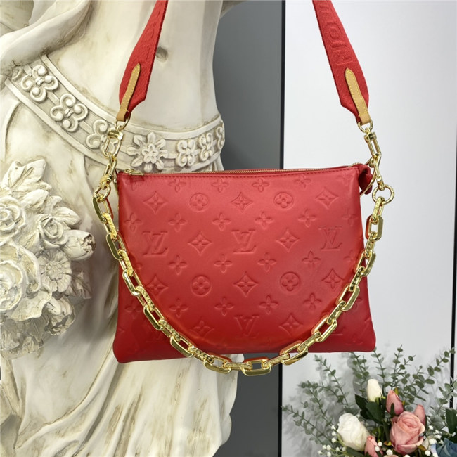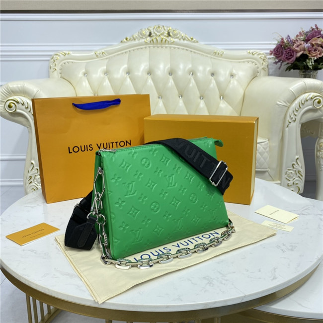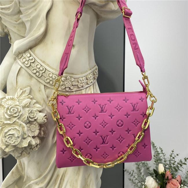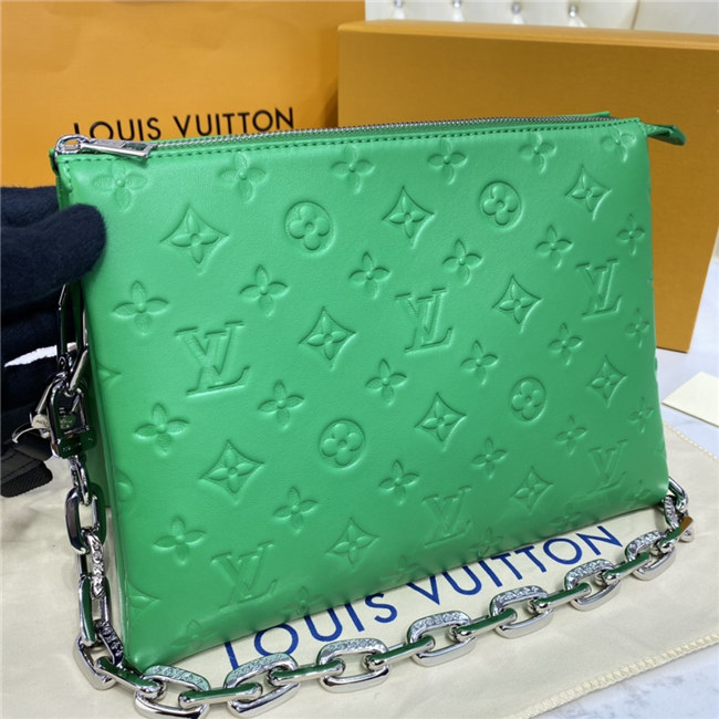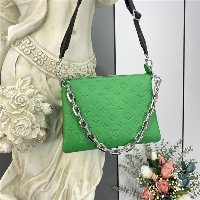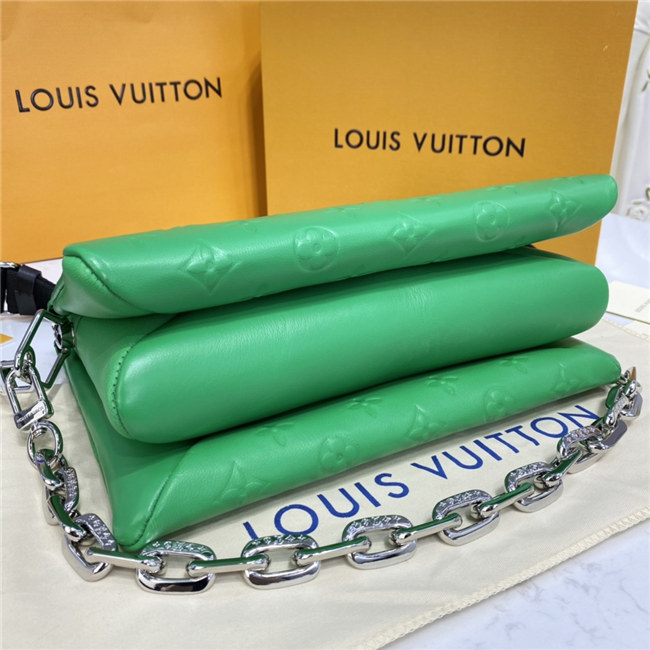 One of the stars of the Spring-Summer 2021 show, the Coussin PM handbag is made from Monogram-embossed puffy lambskin. It can be worn cross-body with the strap, as a chain baguette, or comfortably carried under the arm. The pillow-like Coussin bag brings style to the most simple look, giving it an effortless fashion-forward allure.