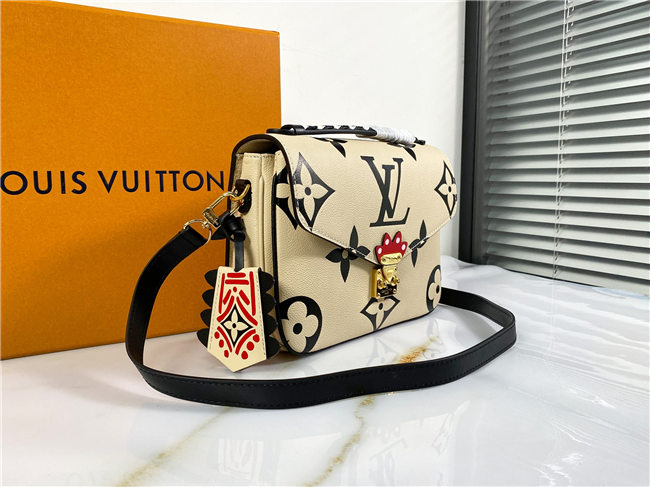 Made from embossed leather with an extra-large Monogram print, the Pochette Métis handbag is visually striking. Fashionable features such as a braided top handle and a graffiti-inspired charm and detailing around the S-lock closure bring added visual excitement. A removable and adjustable strap ensures comfortable shoulder and cross-body wear.