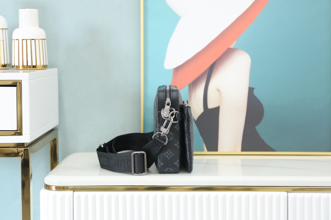 Introducing the LOUIS VUITTON gray crossbody bag in the TRIO set (M69443). This set is made with premium materials from the original French factory and has become another highly sought-after item tailored specifically for men. Following the immense popularity of the Mahjong bag set, this three-piece set is just as difficult to acquire. It’s nearly impossible to find at the counters because it looks incredibly stylish, trendy, and exudes a strong aura when worn. The set features a black monogram as the main bag with additional color-blocked smaller bags, creating a fashionable vibe. It’s undoubtedly the best choice for men, offering impeccable attention to detail and a truly valuable product!