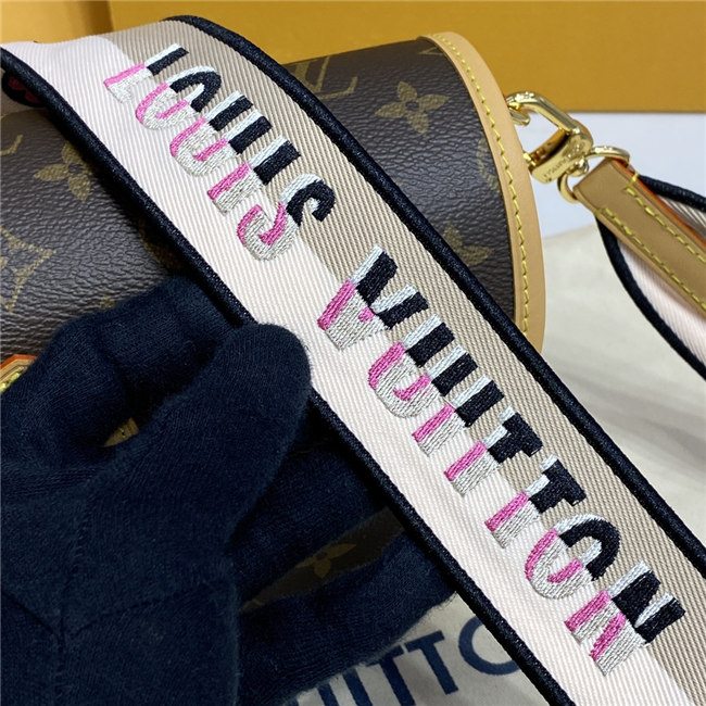 The Diane satchel in Monogram canvas revisits a classic model from the 90s, combining such vintage details as leather corners and an archival-inspired buckle with the modern functionality of smart pockets and a well-organized interior. The exclusive wide jacquard strap reverses from a bold Louis Vuitton signature to a subtle Monogram Flower motif.