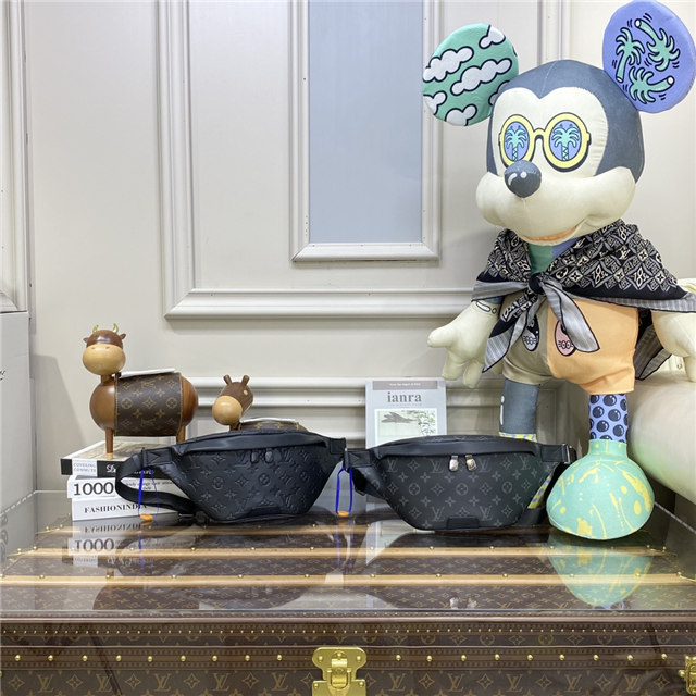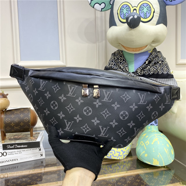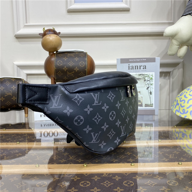 Crafted from Monogram Eclipse canvas, the Discovery bumbag offers the ideal mix of casual chic and modern functionality. With a body-friendly shape and adjustable belt, it can be worn around the waist, over the shoulder or slung stylishly across the chest. Zipped pockets, front and back, provide easy access to phone, cards and keys.