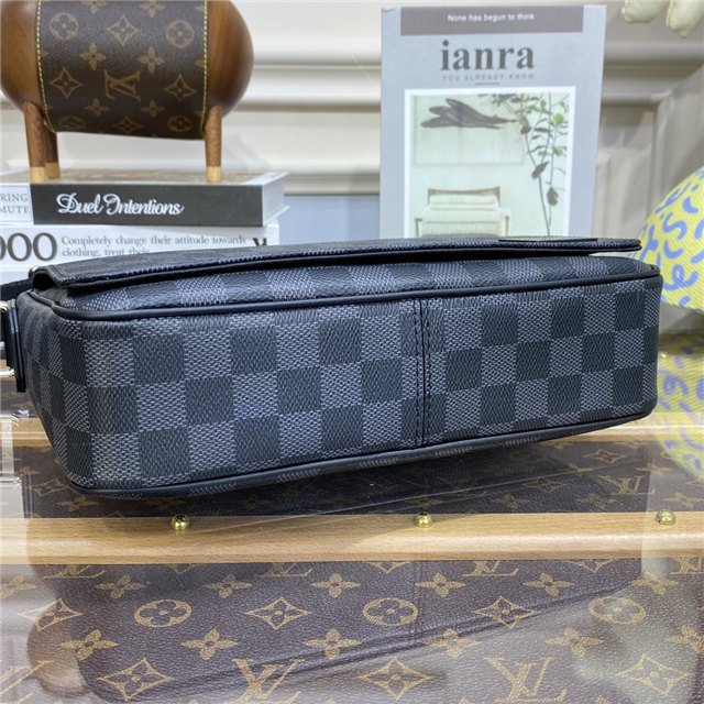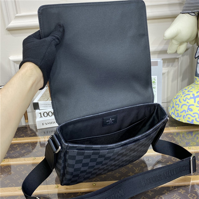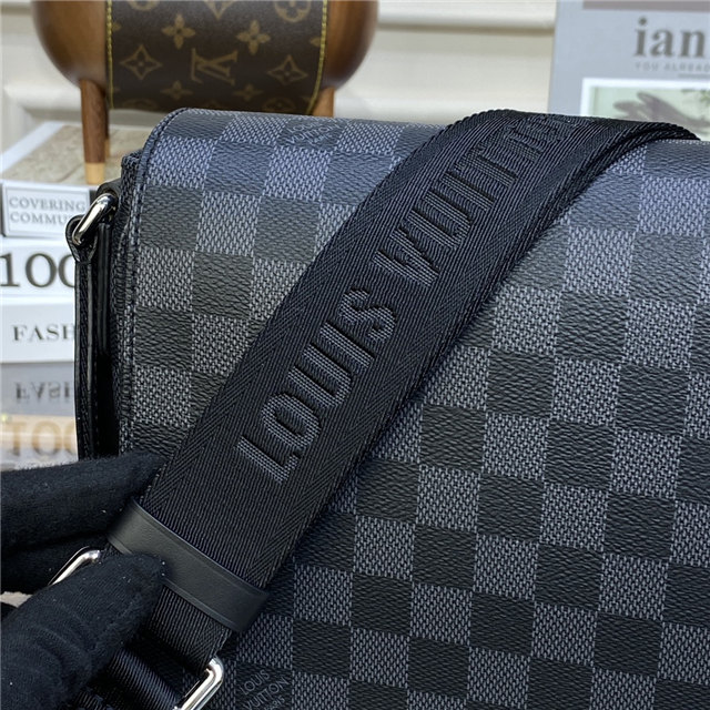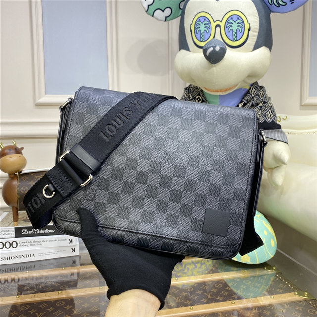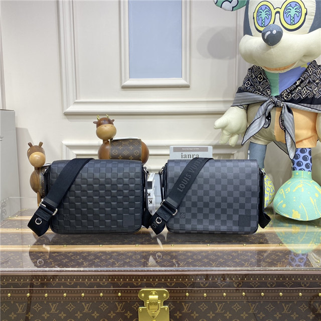 A little smaller and more rectangular than the previous version, the new District PM in Damier Graphite coated canvas has been revamped to emphasize the purity and proportions of this emblematic messenger bag. The outside zipped pocket and inside pockets keep things organized. The adjustable strap, signed “Louis Vuitton”, ensures carrying comfort.