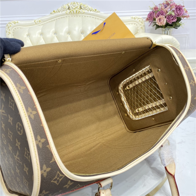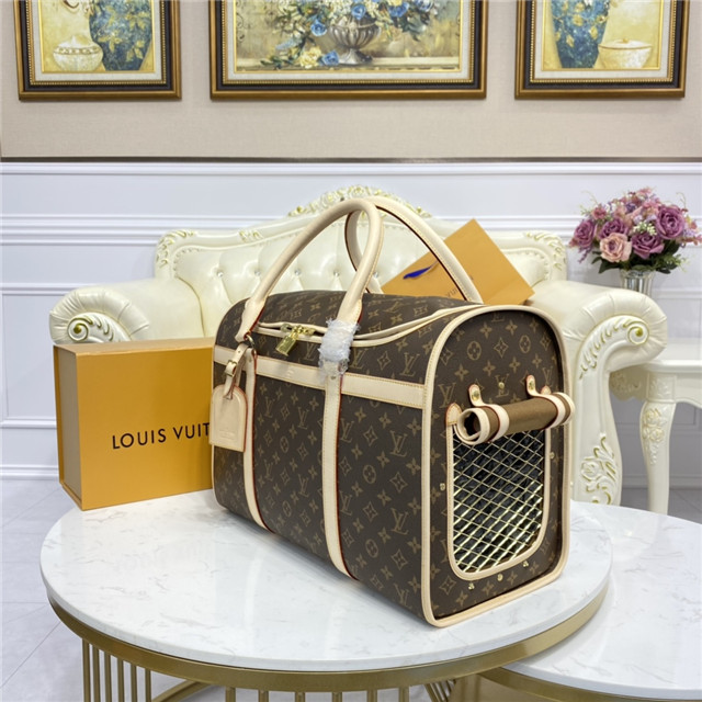 This spacious pet carrier is resistant to water and scratches. It comes equipped with a double zip-around closure and a breathable mesh window.