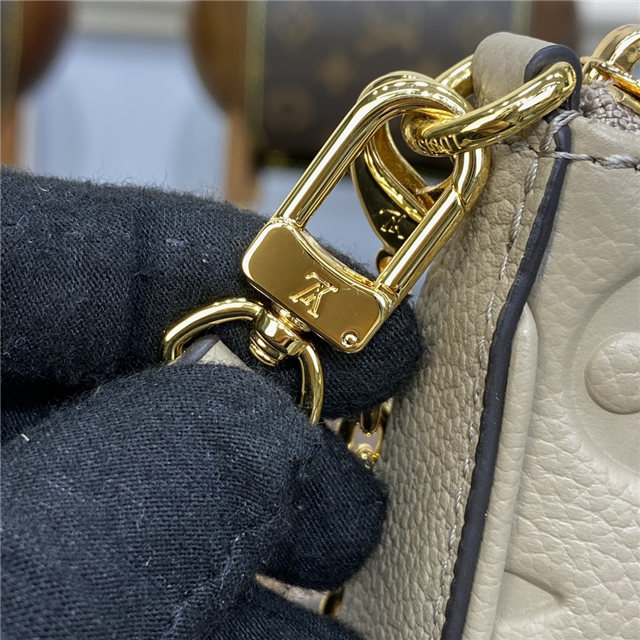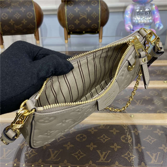 The Easy Pouch On Strap is made from Monogram Empreinte leather. The sleek design lends itself beautifully to the embossed Monogram pattern on the supple Empreinte leather. It can be worn on the shoulder, with the chain or the strap for a short carry, or cross-body as the leather strap is adjustable.