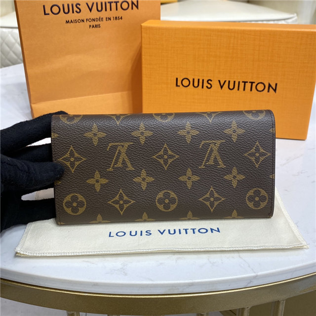 Proving that functionality and beautiful design can go together, the Emilie Wallet is elegance itself in supple Monogram canvas with a fresh lining color. Numerous pockets and an attractive shape make it irresistible.