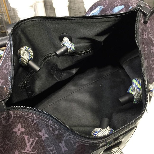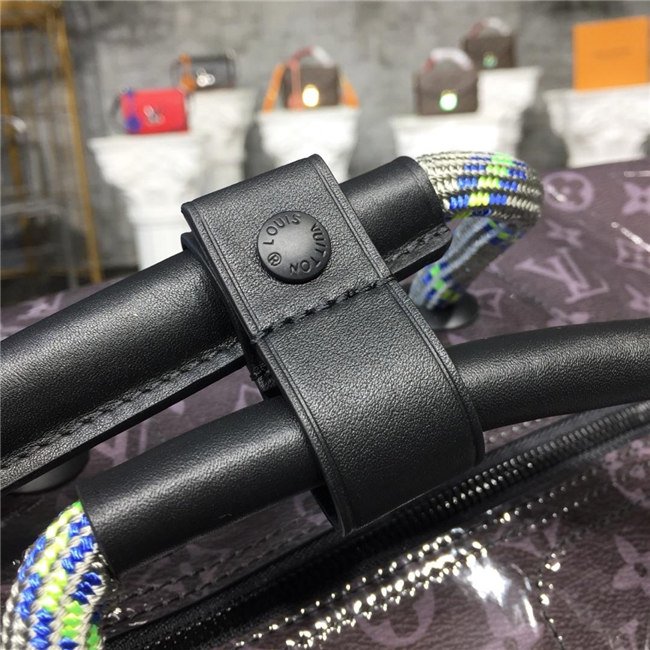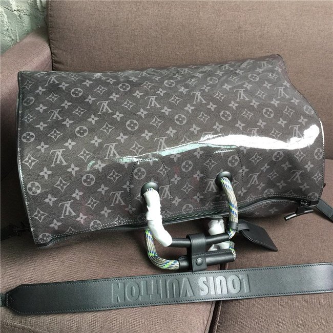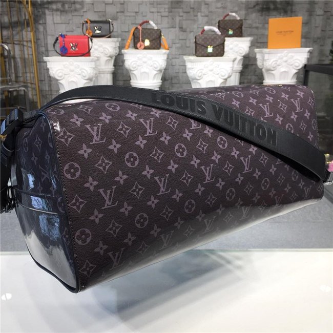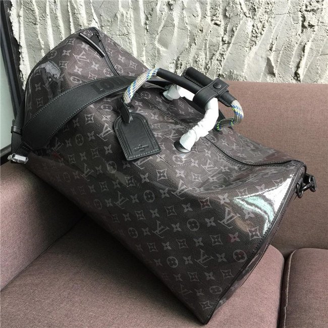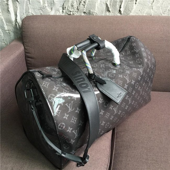 Louis Vuitton”s iconic Keepall Bandouliere 50, the original soft travel bag, is revisited for this special edition in key materials from the Fall-Winter 2018-19 men”s fashion show. Here, it comes in high-gloss Monogram Glaze canvas and features natural cowhide-leather trim, textile handles and a removable shoulder strap embossed with the House signature.