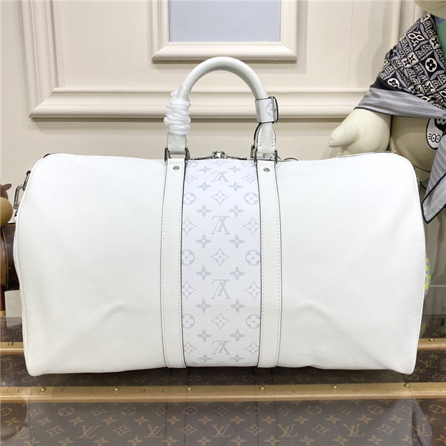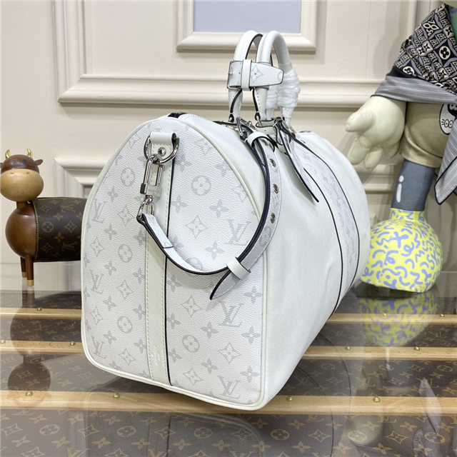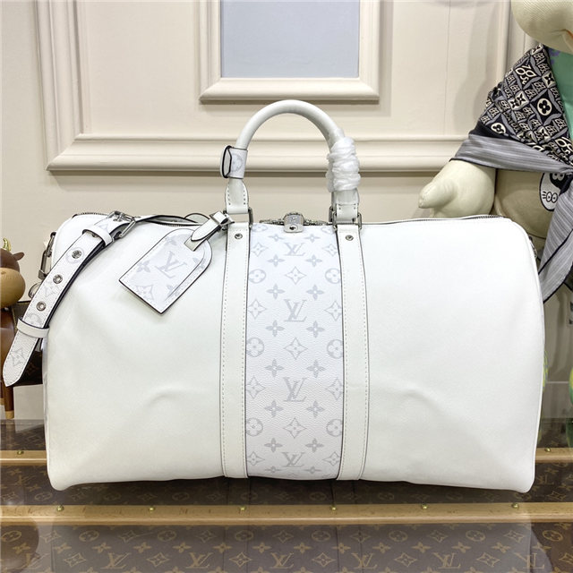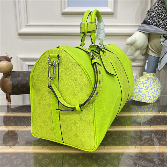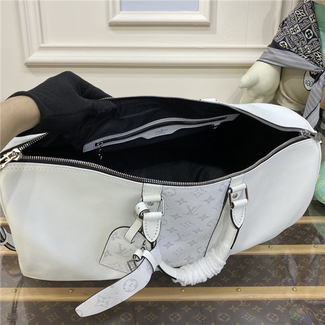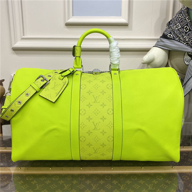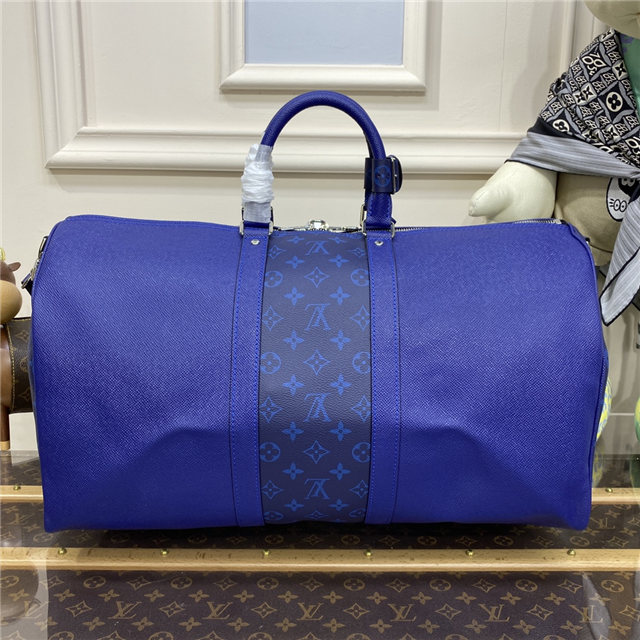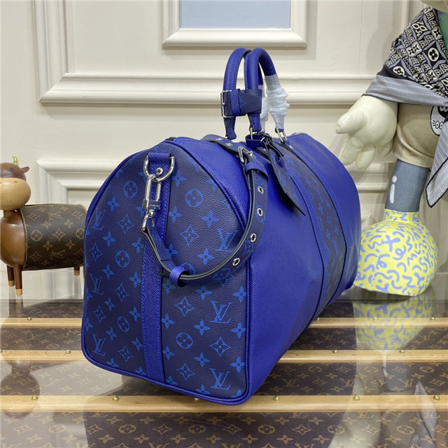 Part of the Taigarama collection, this special edition of the Keepall Bandoulière 50 combines Taiga leather with Monogram Eclipse canvas. Launched in the 1930s, the Keepall is a Louis Vuitton icon and the original soft travel bag. Ideal for short trips, it can be carried in the hand, on the shoulder or across the body.