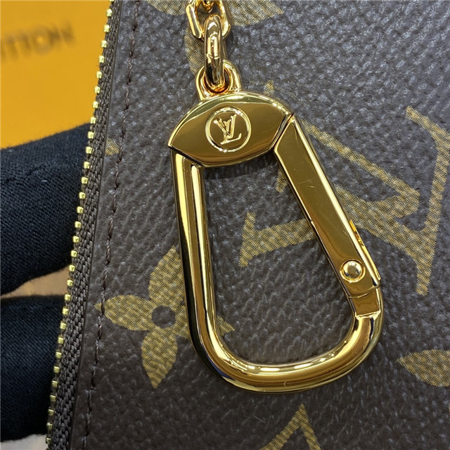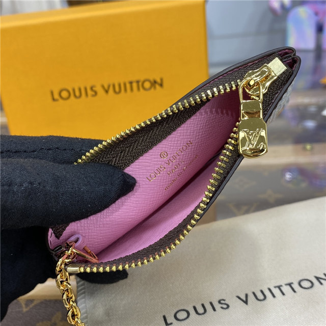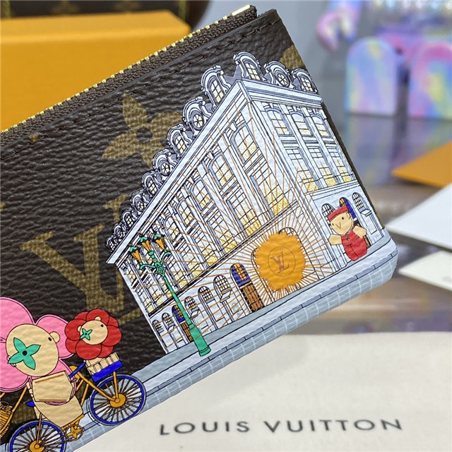 This exclusive edition of the Key Pouch in Monogram canvas is part of the Vivienne Holidays 2022 collection, which celebrates the spirit of travel. A colorful, detailed print features Louis Vuitton”s mascot Vivienne in front of the Paris boutique on Place Vend?me. This collectible accessory, which can also carry cash and cards, makes an ideal gift.
