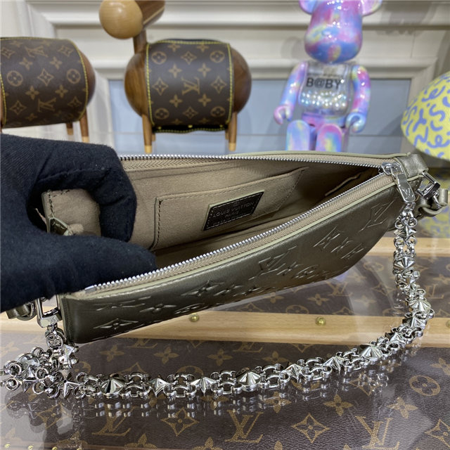Seen on the runway in the Louis Vuitton Cruise 2023 show, this version of the Lexington comes in an eye-catching new material: Moonogram calfskin in a lustrous metallic shade of gold. The House’s emblematic Monogram pattern is debossed on the leather, recalling the shadows cast by the craters on the moon. A futuristic reinterpretation of a classic, functional bag.