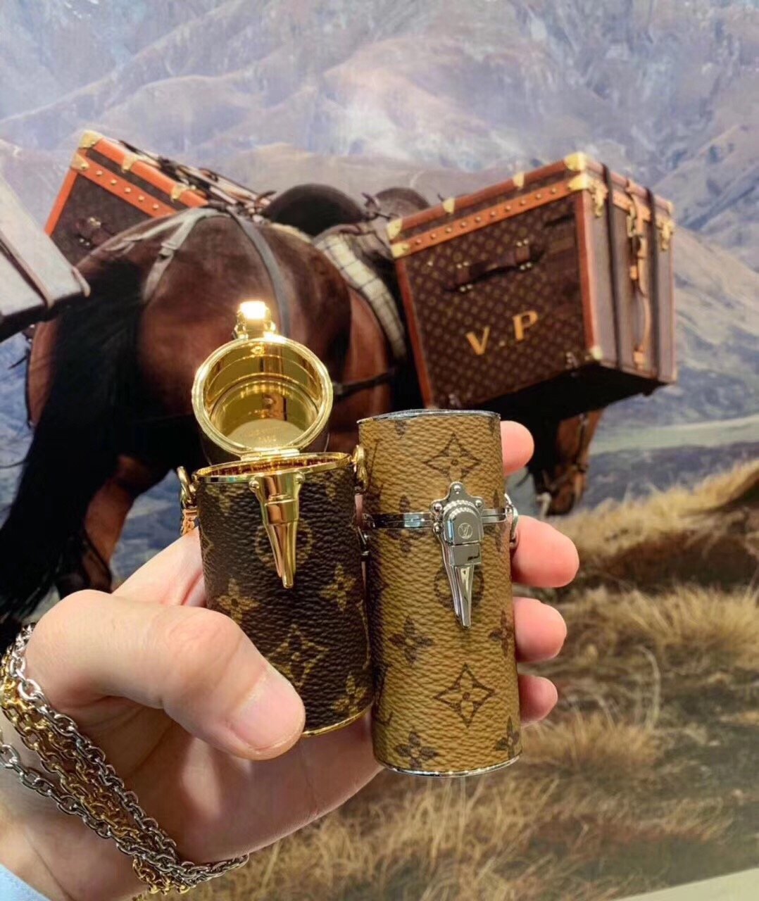 Iconic Monogram canvas and an Art Deco shape combine to create this elegant lipstick case. Inspired by 1920s makeup boxes, this piece features a lock inspired by historic Louis Vuitton trunks and is delicately engraved with an LV Circle logo. This compact accessory can be worn as a jewelry or to adorn the outside of a favorite bag.