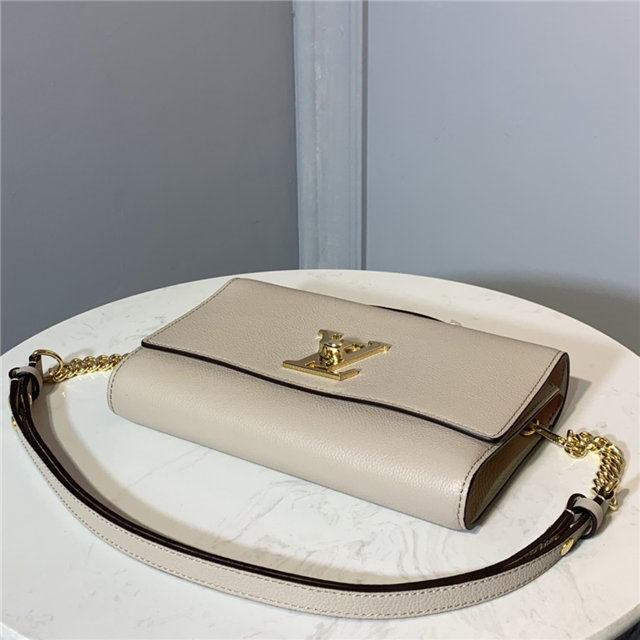 With its iconic LV turn lock and leather top handle for clutch carry, the Lockme Clutch is a striking day-to-evening bag. It boasts a clever strap with press studs to easily adjust the length for shoulder or cross-body carry. The small chain at the end of the strap brings a precious touch for evening occasions.