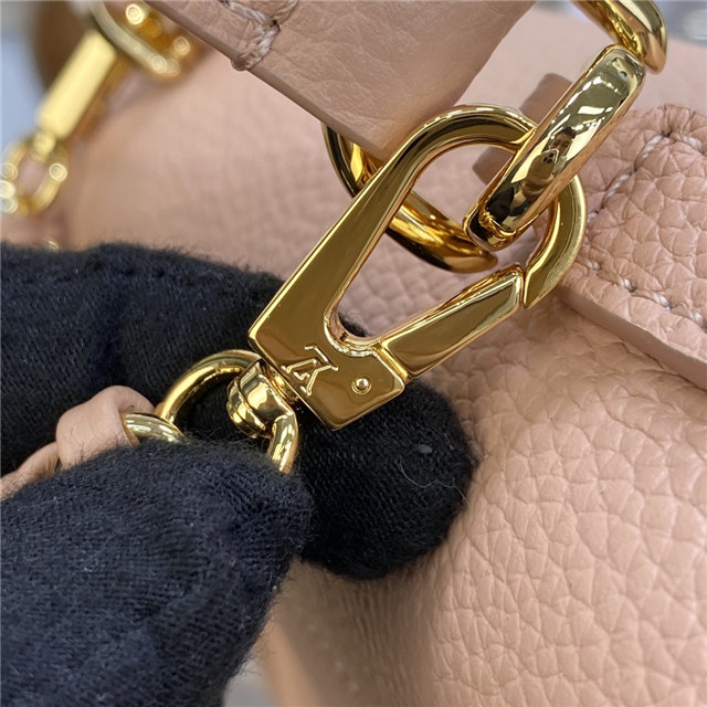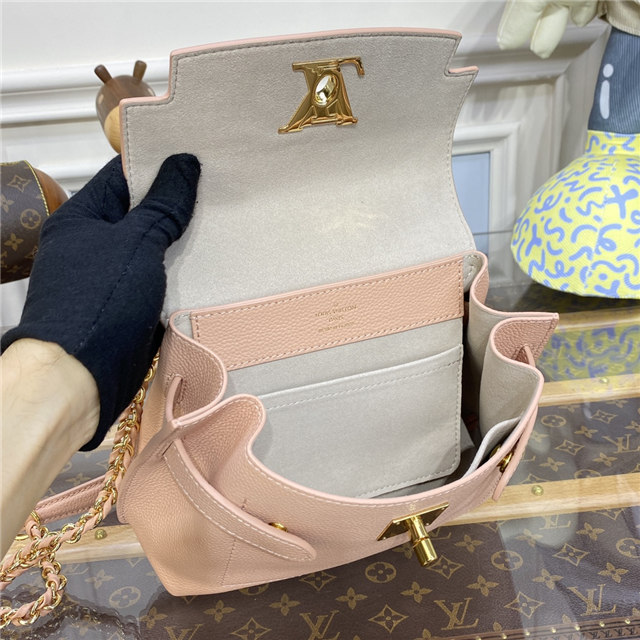 The adorably sized Lockme Ever Mini handbag in grained calf leather is edited this season in fashionable new colorways. Sophisticated lines and a signature LV lock make this model a stylish companion for daily wear or evenings out. The elegant braided chain invites cross-body or over-the-shoulder wear; the top handle is ideal for a feminine hand carry.