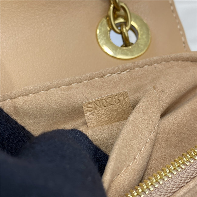 The signature V shaped quilting of this Chain Bag handbag is revisited in smooth cowhide leather. The vintage gold-color chain slides through engraved eyelets while the folded gussets make it supple and body-friendly. The interior enables easy organization of a woman’s essentials thanks to its multiple compartments. The recognizable LV emblem signs the bag.