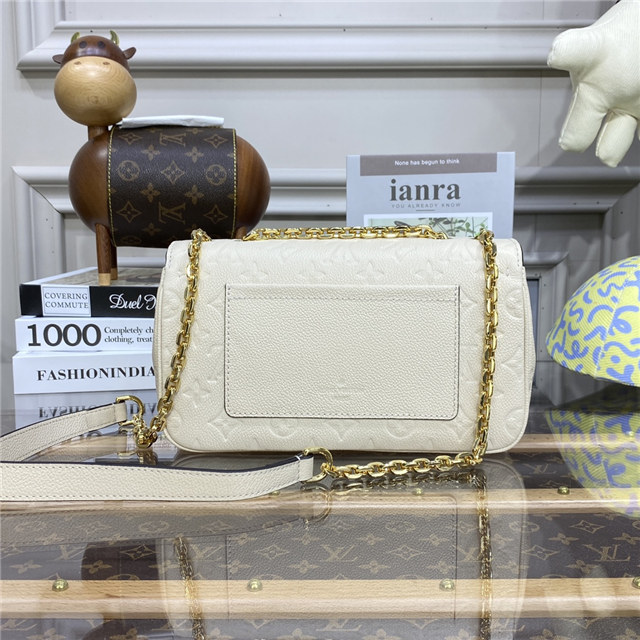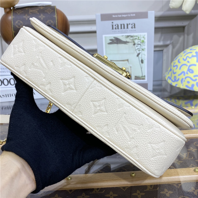 The elegant Marceau chain bag, with its emblematic S-lock and gold-color chain, is breathtaking in Monogram Empreinte leather. The bag’s Monogram-embossed leather is paired with plain leather on the flap, and a soft leather lining. Smart outside and in, it’s roomy enough for a large wallet and iPhone Pro Max.