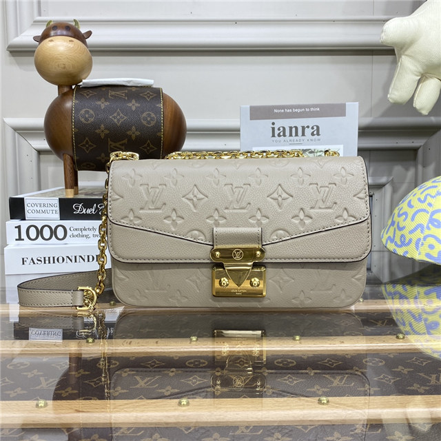 The elegant Marceau chain bag, with its emblematic S-lock and gold-color chain, is breathtaking in Monogram Empreinte leather. The bag’s Monogram-embossed leather is paired with plain leather on the flap, and a soft leather lining. Smart outside and in, it’s roomy enough for a large wallet and iPhone Pro Max.