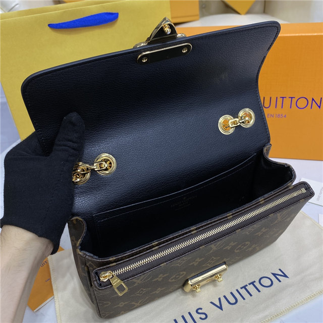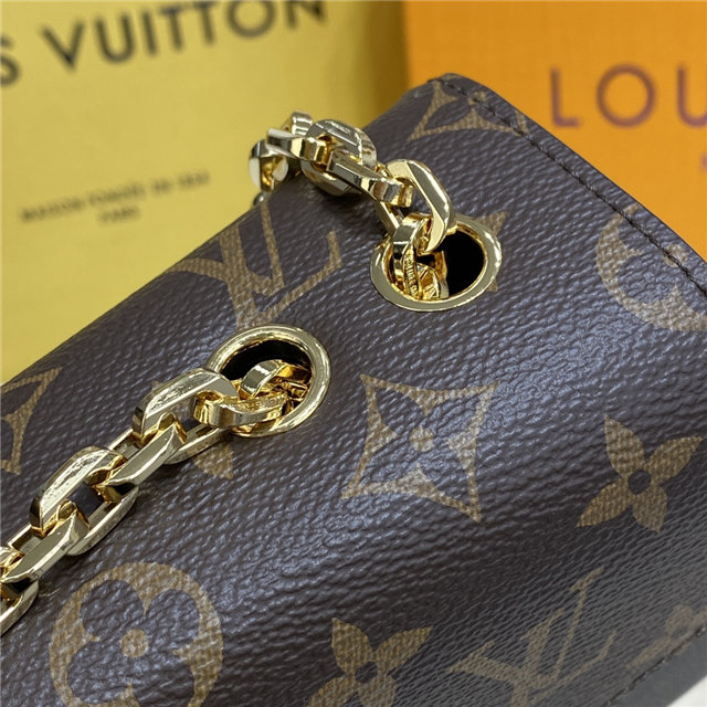 For Spring 2022, Louis Vuitton launches the feminine Marceau chain handbag. Inspired by the design of the Pochette Metis, it’s a compact bag with plenty of storage, that closes with a S-lock, reminiscent of those on the House’s heritage trunks. The gold-color sliding chain has a leather shoulder pad for more comfort.