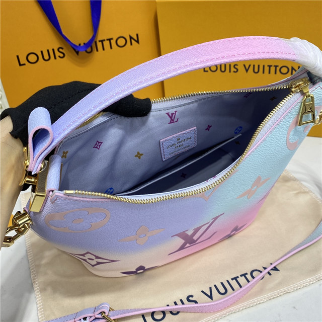 The Maison welcomes Spring with this sweet, colorful Marshmallow PM handbag. Crafted from supple Monogram canvas in appealing gradient hues, this hobo style features a smooth shape and feminine detailing. With its top handle and detachable strap, the bag can be worn in multiple ways, to complement any silhouette.