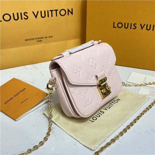 The Micro Métis is a miniature version of the emblematic Pochette Métis bag. Crafted from supple Monogram Empreinte leather, this mini-satchel on its removable, gold-tone chain is a fashionable way to carry essentials. It features the key signatures of the Métis line, including the iconic S-lock clasp inspired by historic Louis Vuitton trunks.