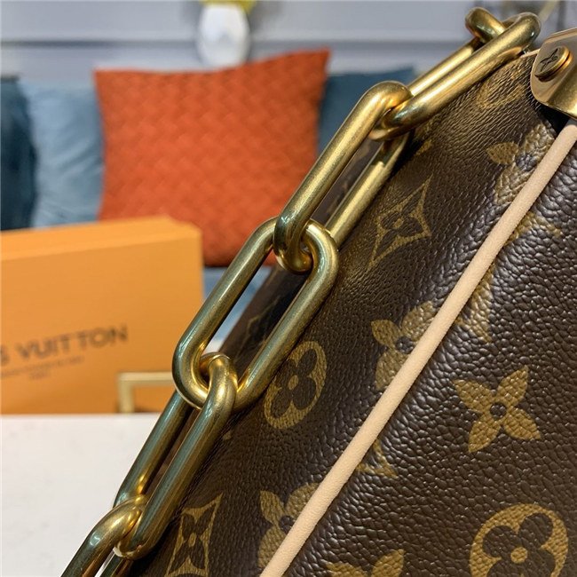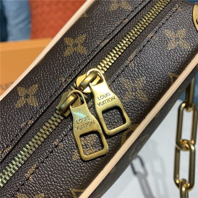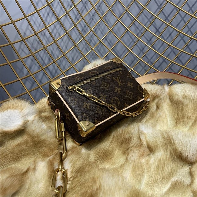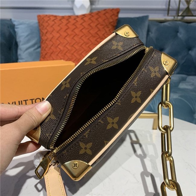 Virgil Abloh pairs iconic Monogram canvas with smooth leather to give the Mini Soft Trunk bag a Louis Vuitton legacy look. With its boxy shape and reinforced corners, it’s clearly inspired by the House’s trunkmaking roots. The gold-tone chain connected to the zipper brings an edgy touch.
