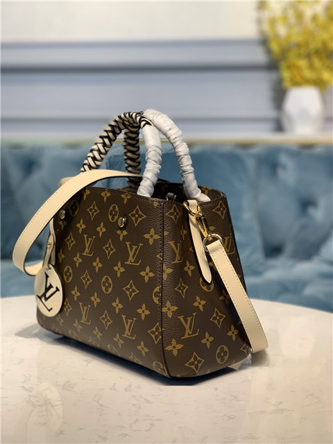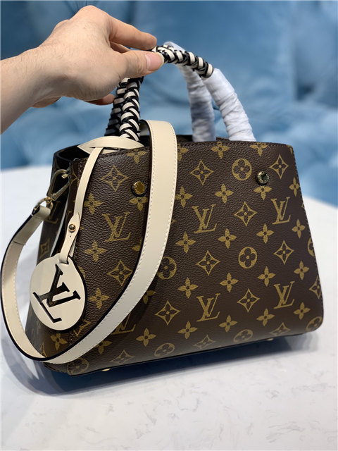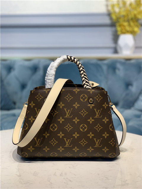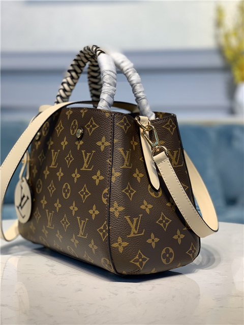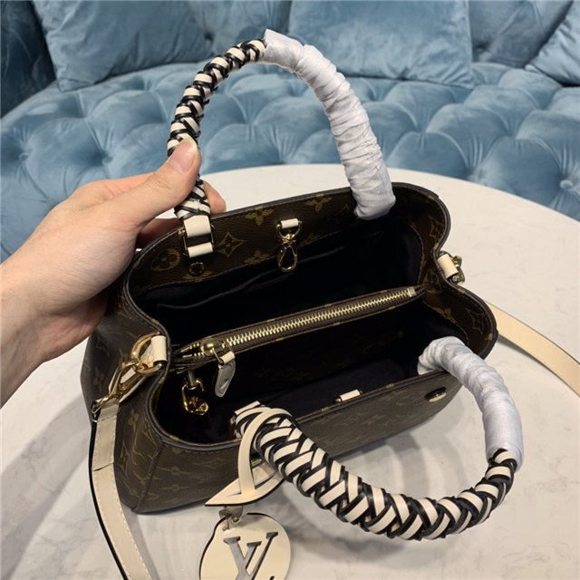 With braided-leather top handles, the structured Montaigne BB handbag in Monogram canvas takes on an artsy feel. Classic Louis Vuitton details such as the key bell are complemented by modern touches like an oversized LV charm. This small bag can be worn on the elbow or over the shoulder, thanks to its detachable strap.
