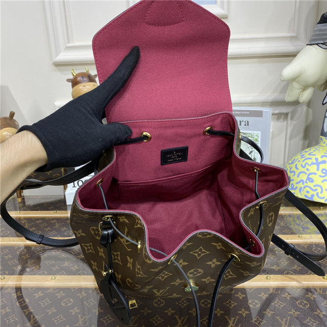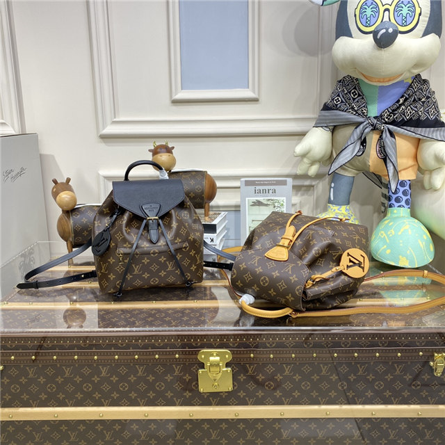 The Montsouris PM is an elegant new backpack made from Monogram canvas and cowhide leather, it closes with a archive Louis Vuitton buckle and leather drawstrings. Practical, with a roomy interior, it features an outside zipped pocket. The top handle and adjustable leather straps allow multiple carry options