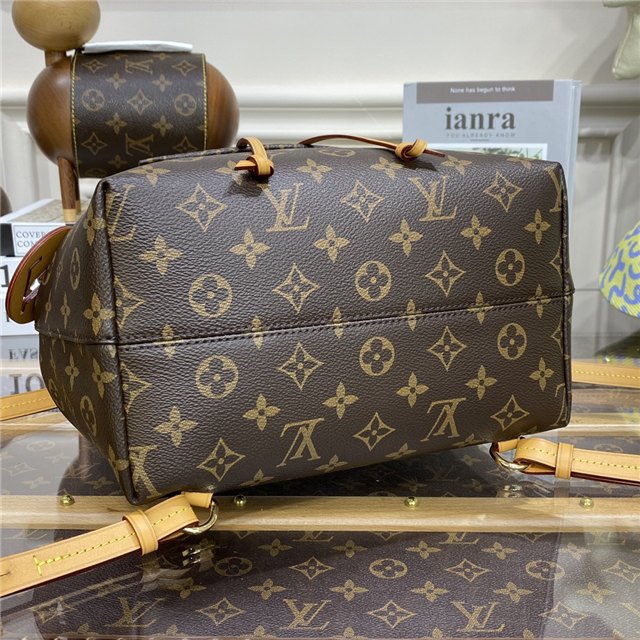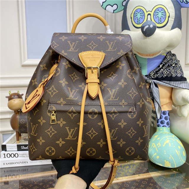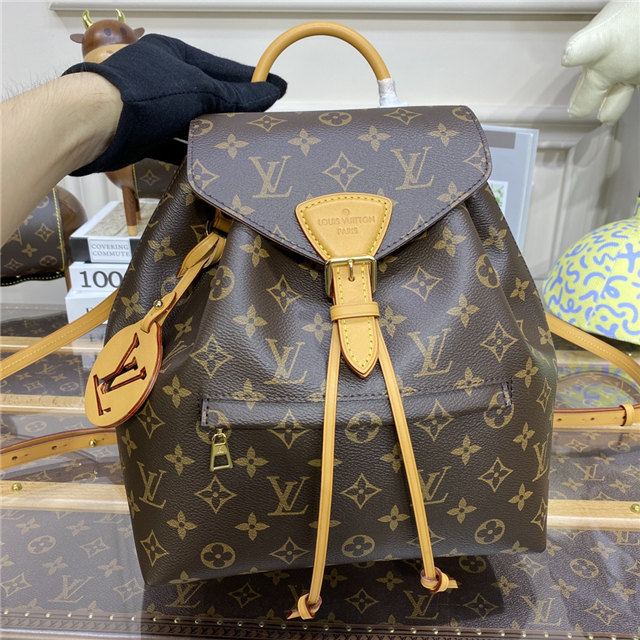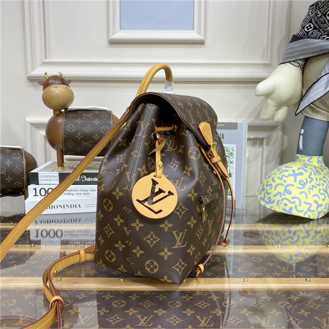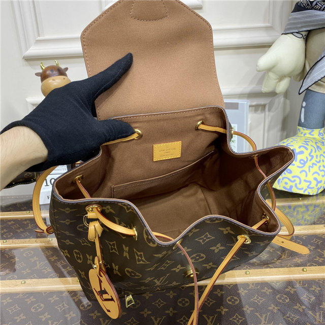 The Montsouris PM is an elegant new backpack made from Monogram canvas and cowhide leather, it closes with a archive Louis Vuitton buckle and leather drawstrings. Practical, with a roomy interior, it features an outside zipped pocket. The top handle and adjustable leather straps allow multiple carry options