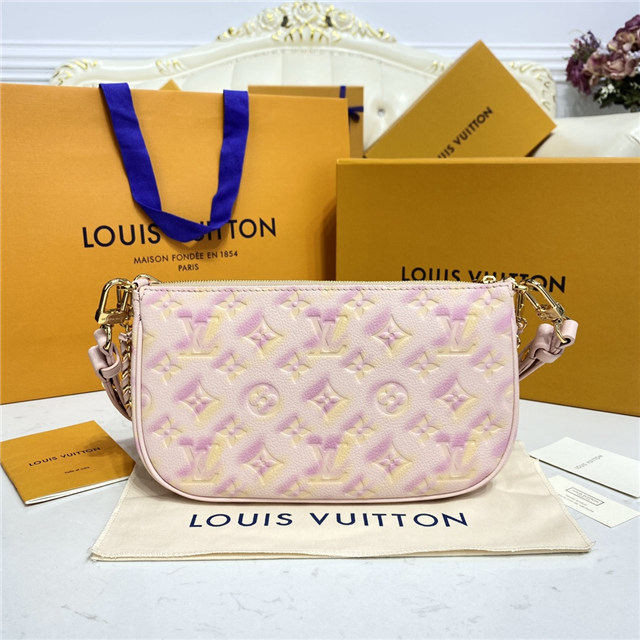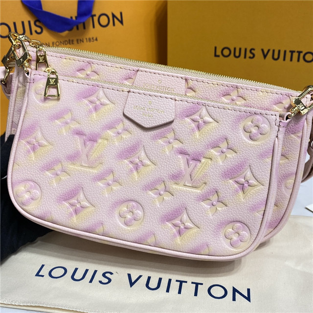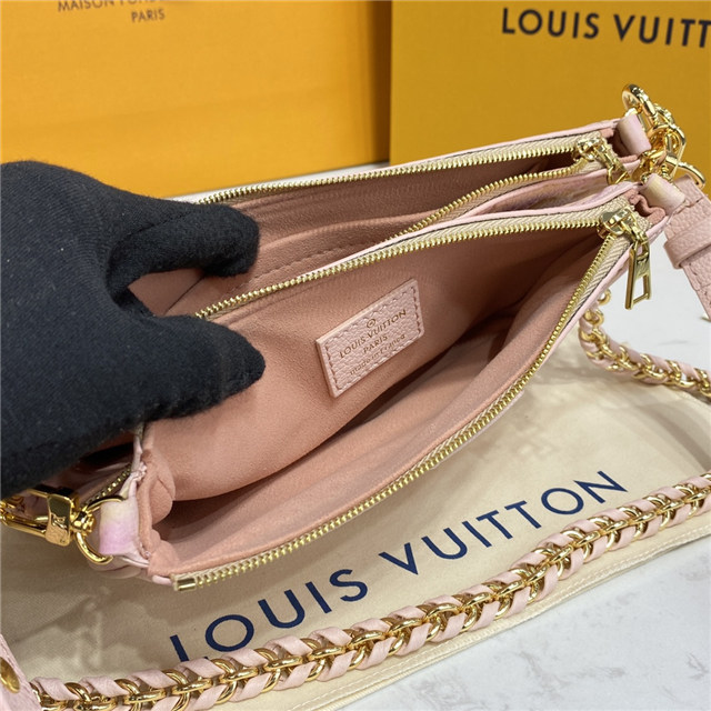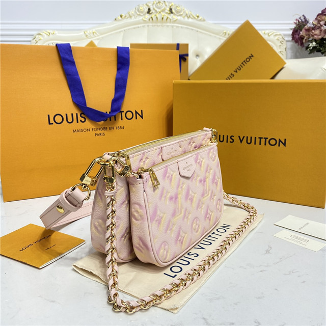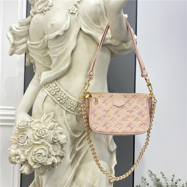 With a glimmering iridescent aspect, this Multi Pochette Accessoires cross-body bag is made from embossed Monogram Empreinte leather in a colorway achieved by a three-step spraying technique. Just the right size to carry a woman’s essentials, this practical bag combines two detachable pouches. It features both a removable chain and a detachable, adjustable strap.