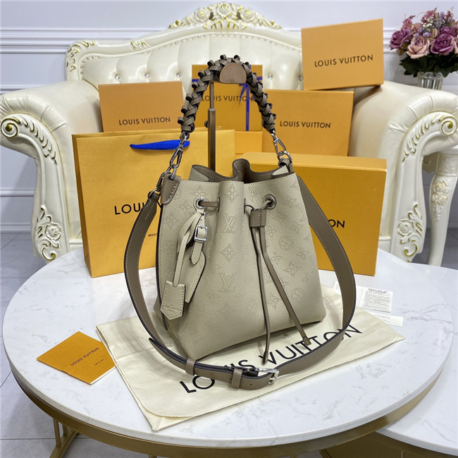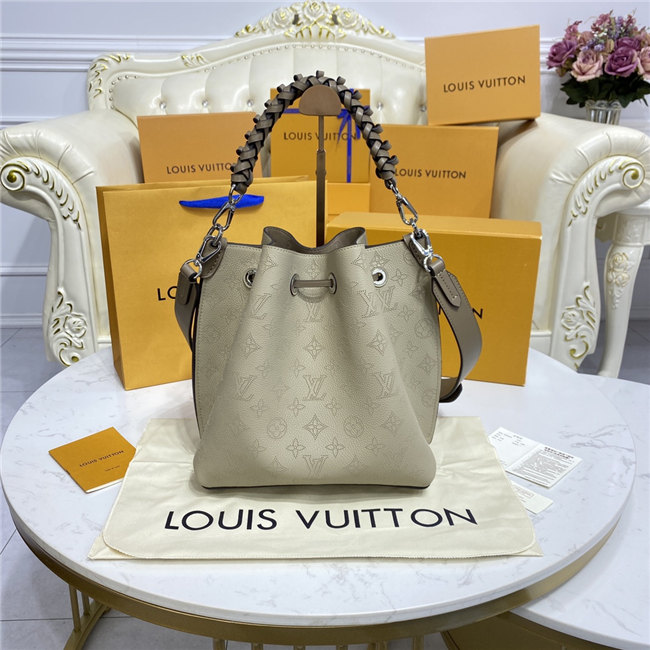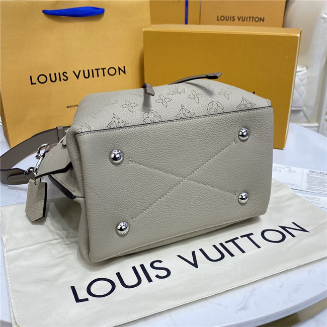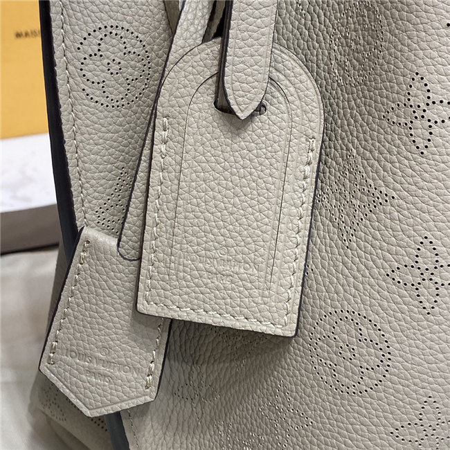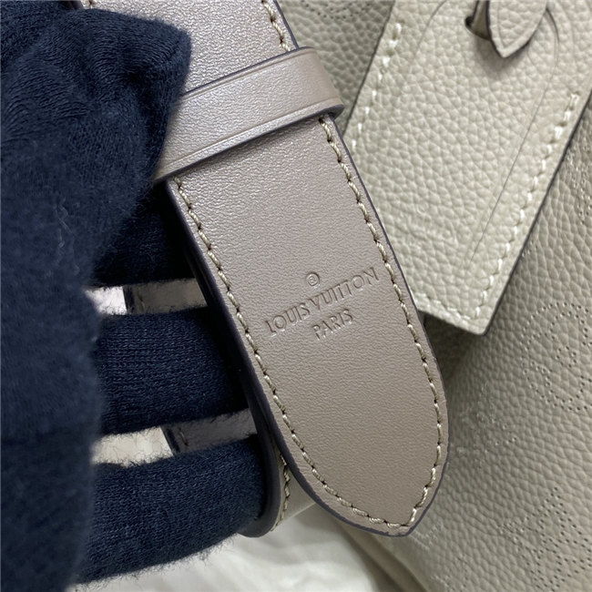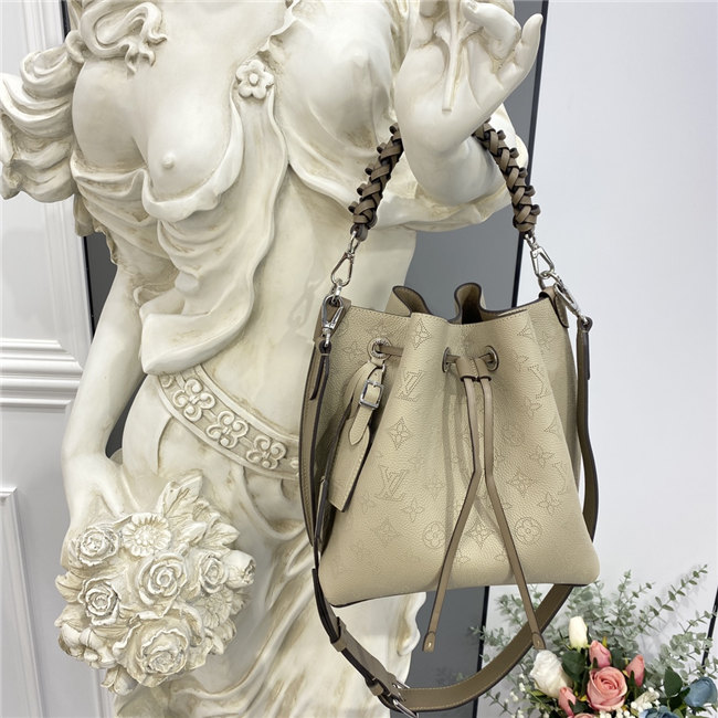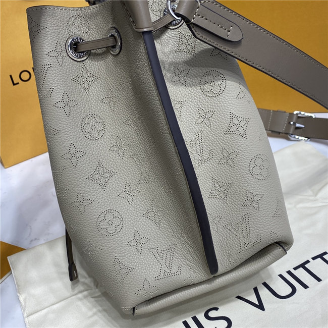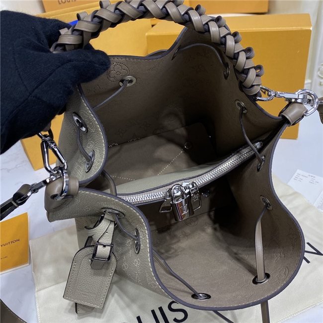 The Muria bucket bag is made from Mahina calf, a perforated leather with a discreet Monogram motif. Supple and sophisticated, it is a pleasure to carry, either by the braided top handle or the long leather strap, which adjusts for short- and long-shoulder or hands-free cross-body wear. Crafted signature details include a name tag and keybell in smooth calfskin.