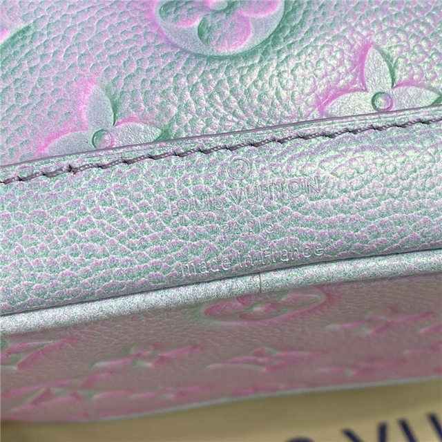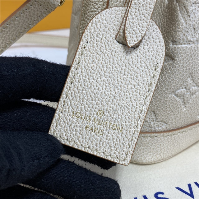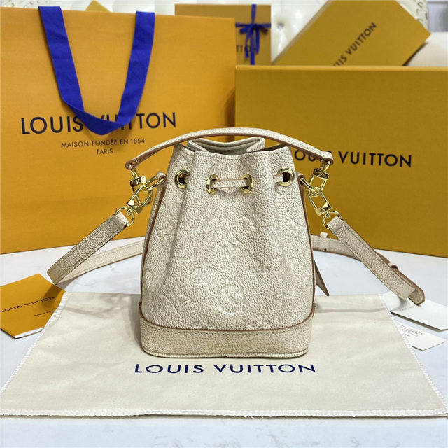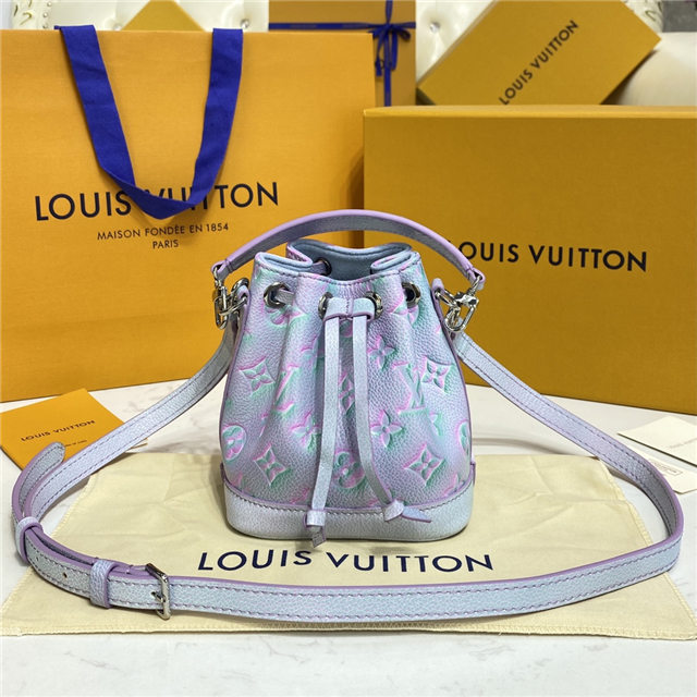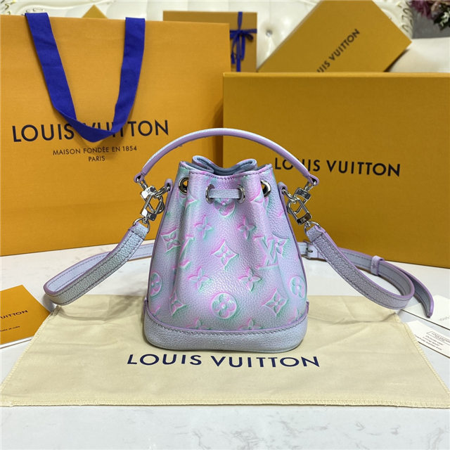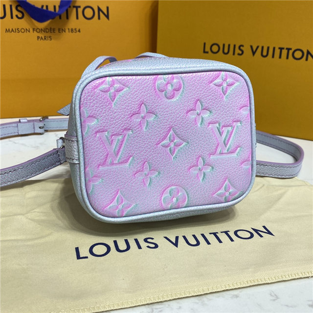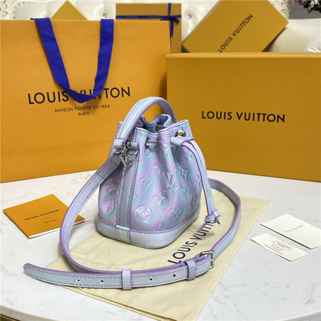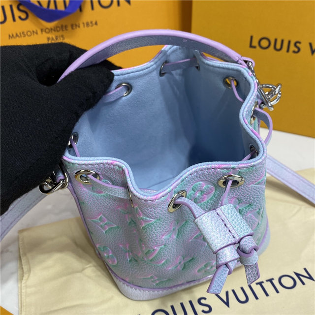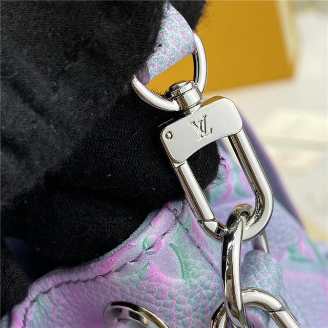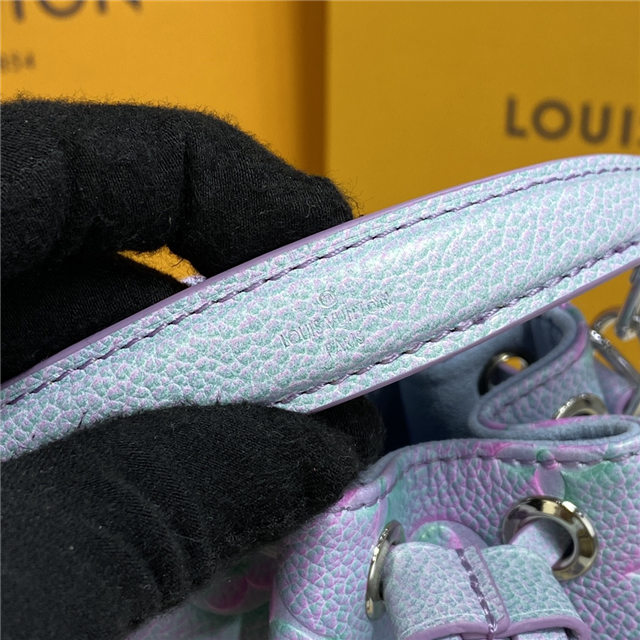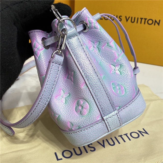 For the Summer Stardust collection, the Nano Noé is reinterpreted in supple Monogram Empreinte leather, embossed with the Monogram pattern. The leather is specially treated to create a shimmering effect inspired by starry skies. With room for everyday essentials, this miniature replica of the iconic Noé bag features a removable handle and a removable, adjustable strap for multiple carry options.