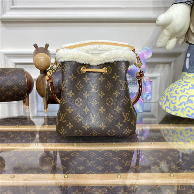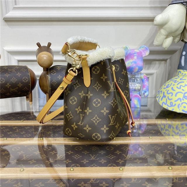The Cozygram capsule combines iconic Monogram canvas, cream-colored shearling and aged natural leather in an exclusive line of handbags, featuring this covetable NéoNoé BB. One of the Maison’s most iconic models, it looks wintry-fresh with a top handle and border of soft, fluffy fleece. The bag’s long leather strap adjusts for different styling options.