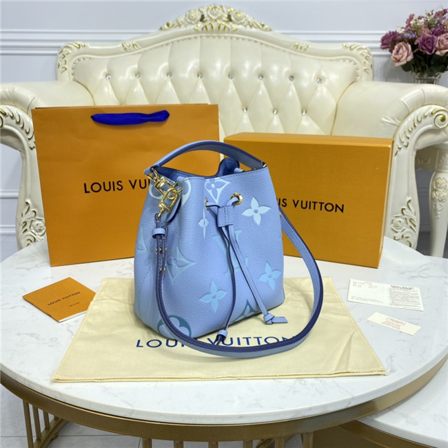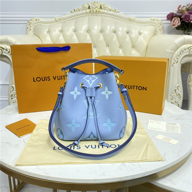 Made from two-color Monogram Empreinte leather, the gradient pastel colorway of the Monogram Giant motif brings an estival feel to this resolutely on-trend NéoNoé BB bucket bag. It features a detachable top handle for hand and elbow carry as well as an adjustable strap for hand carry and over-the-shoulder wear.