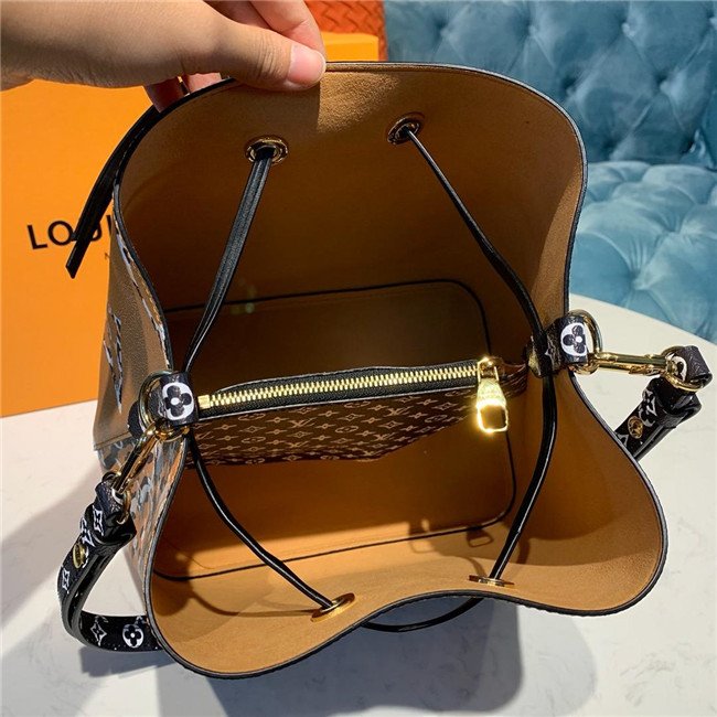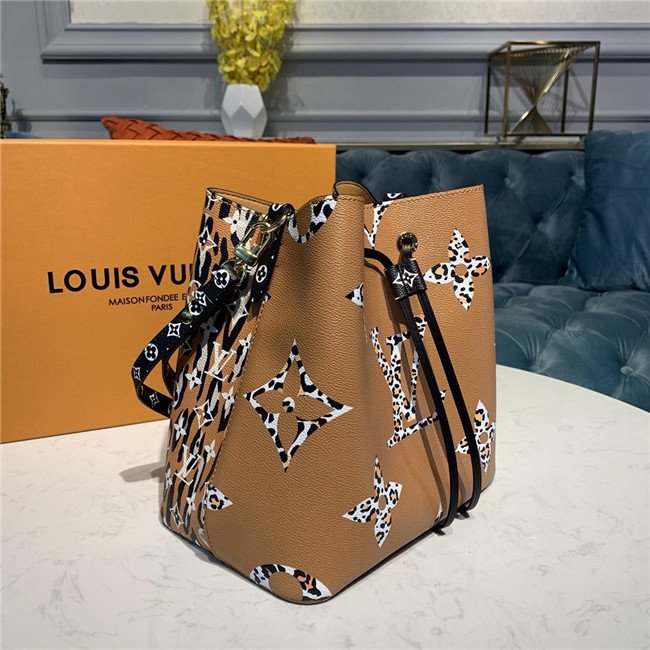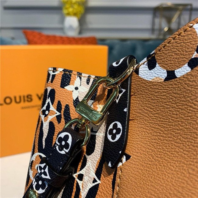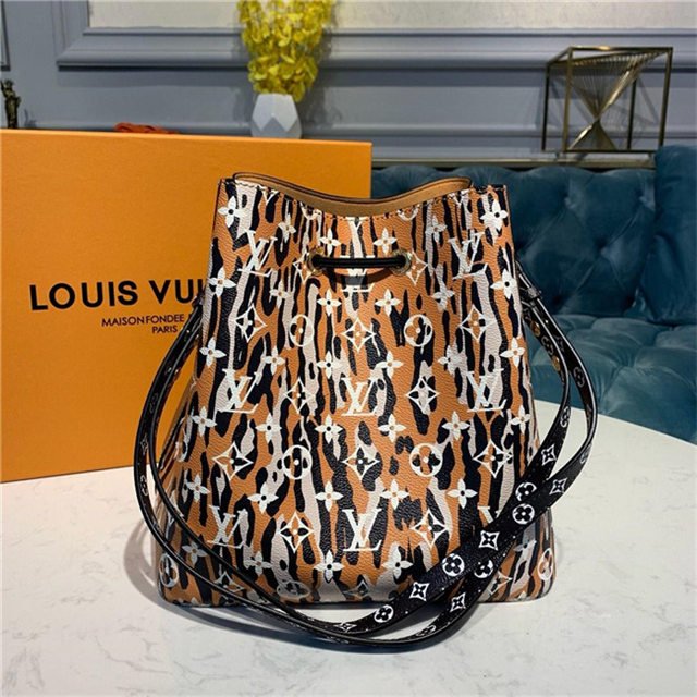 Mixing the Monogram motif with animal patterns, the NéoNoé takes on a savage look as part of the LV Jungle capsule collection. This bucket bag is both boldly fashionable and remarkably practical, thanks to its body-friendly and light-weight construction. Its adjustable strap enables three carrying styles: short or long shoulder and cross-body.